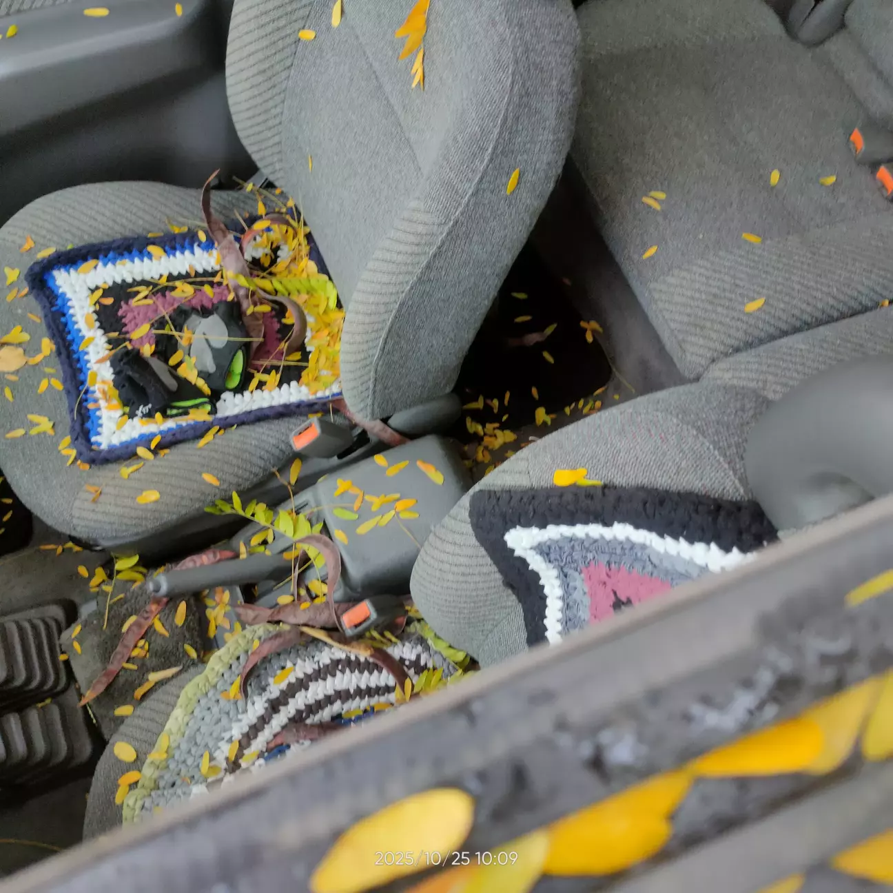 Вночі йшов дощ, сипалось листя — природа вирішила зробити мені «осінню фотозону» просто в салоні.