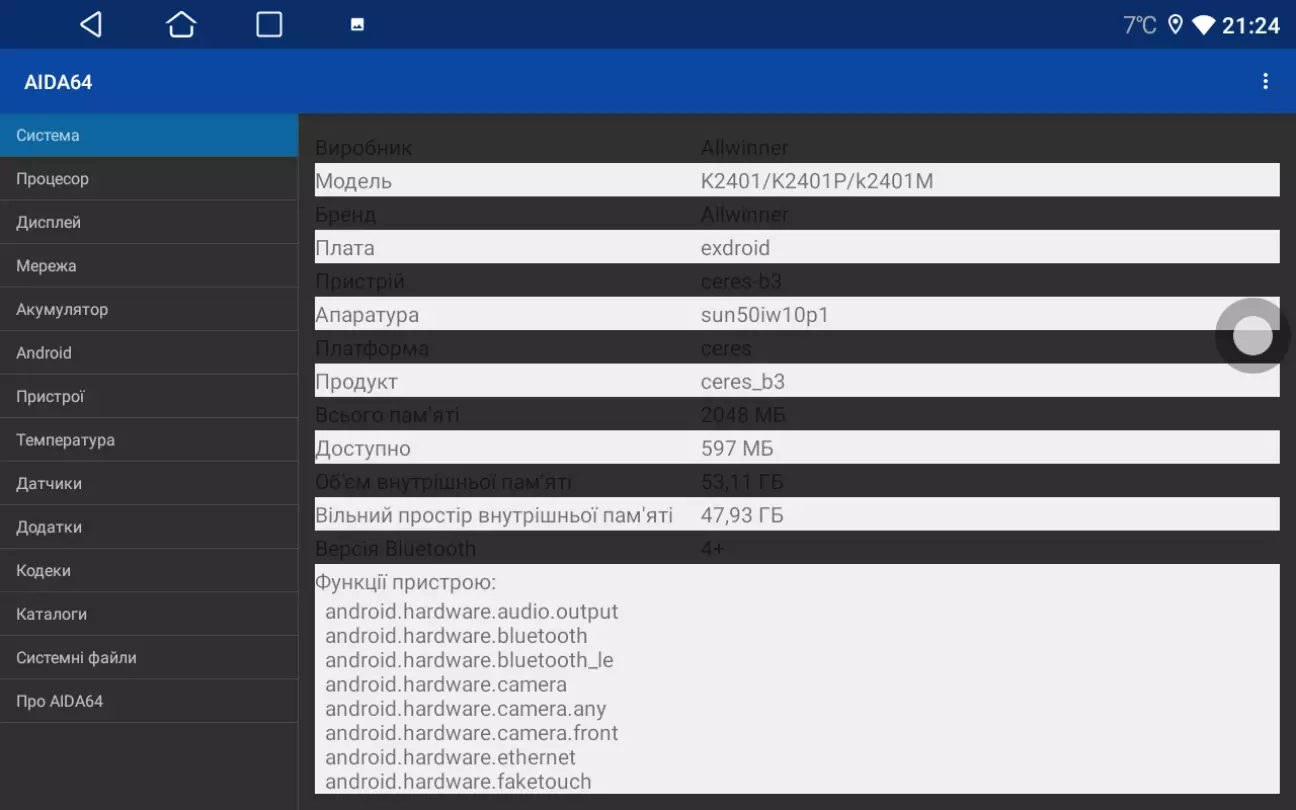 По параметрах: 2 гіга оперативи, 64 гіга памяті, проц А100, платформа K2401 з прошивкою NWD