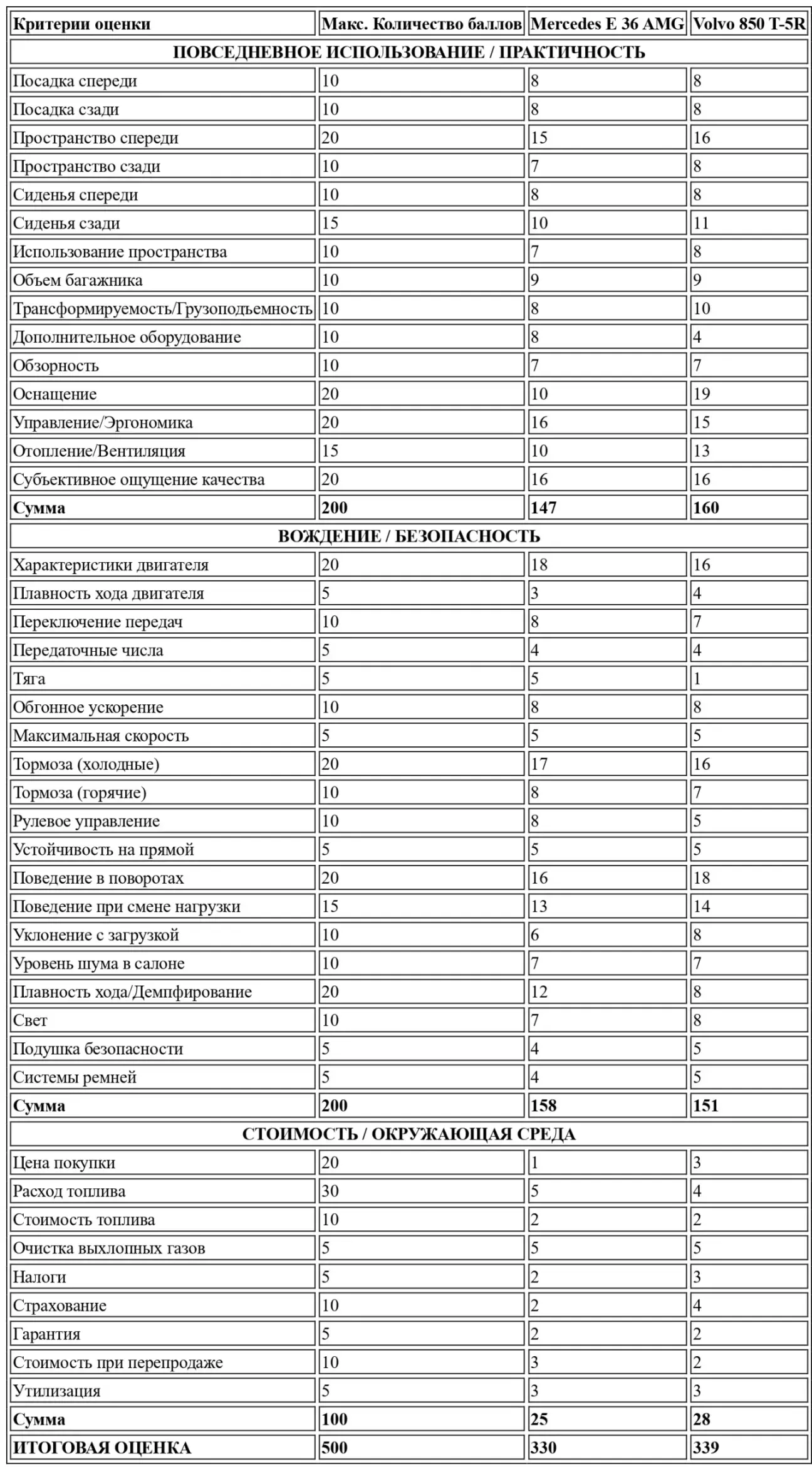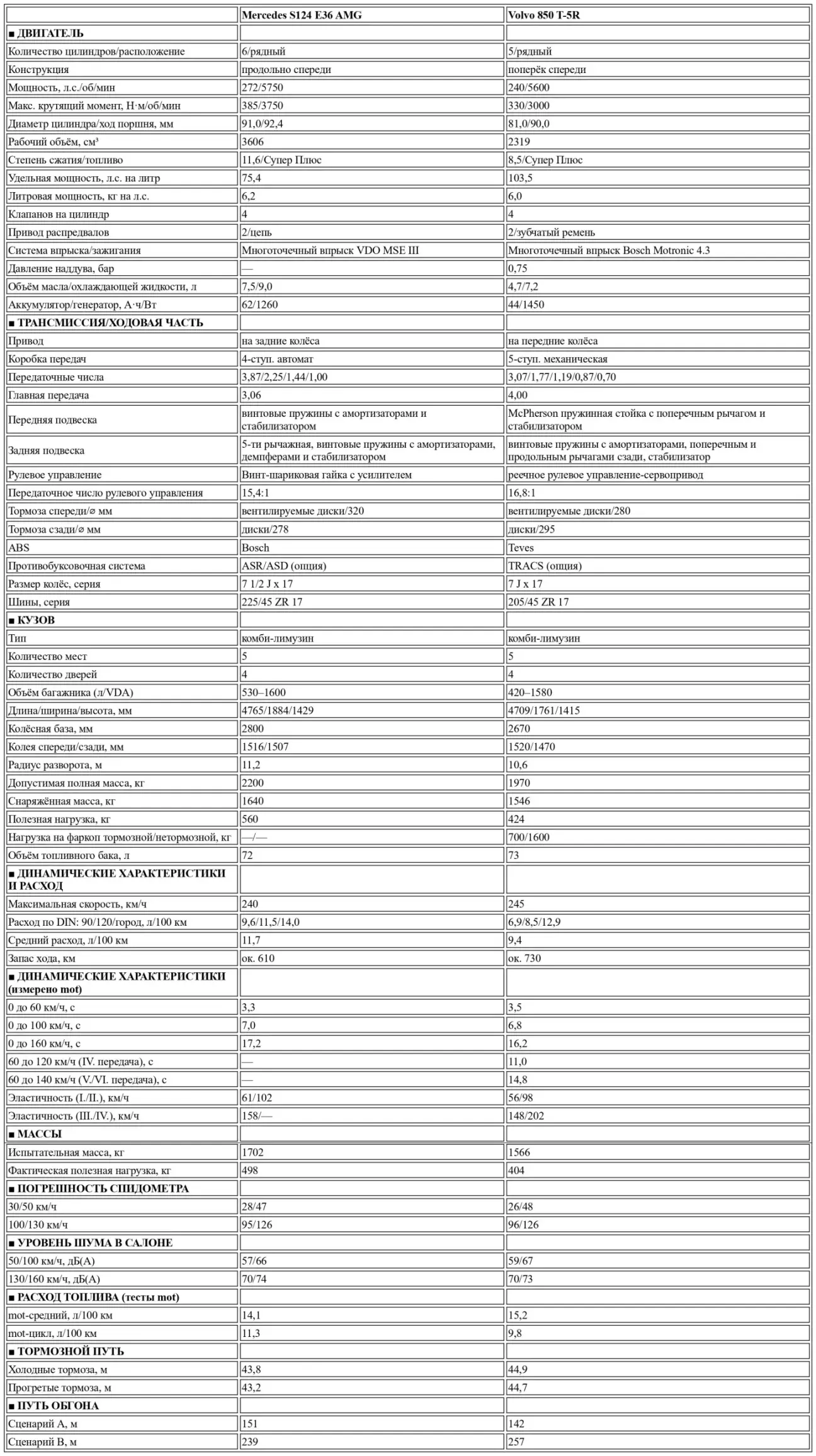 Перевод теста-сравнения Mercedes S124 E36 AMG vs Volvo 850 T-5R от немецкого автомобильного журнального издания MOT, № 3, 1995.