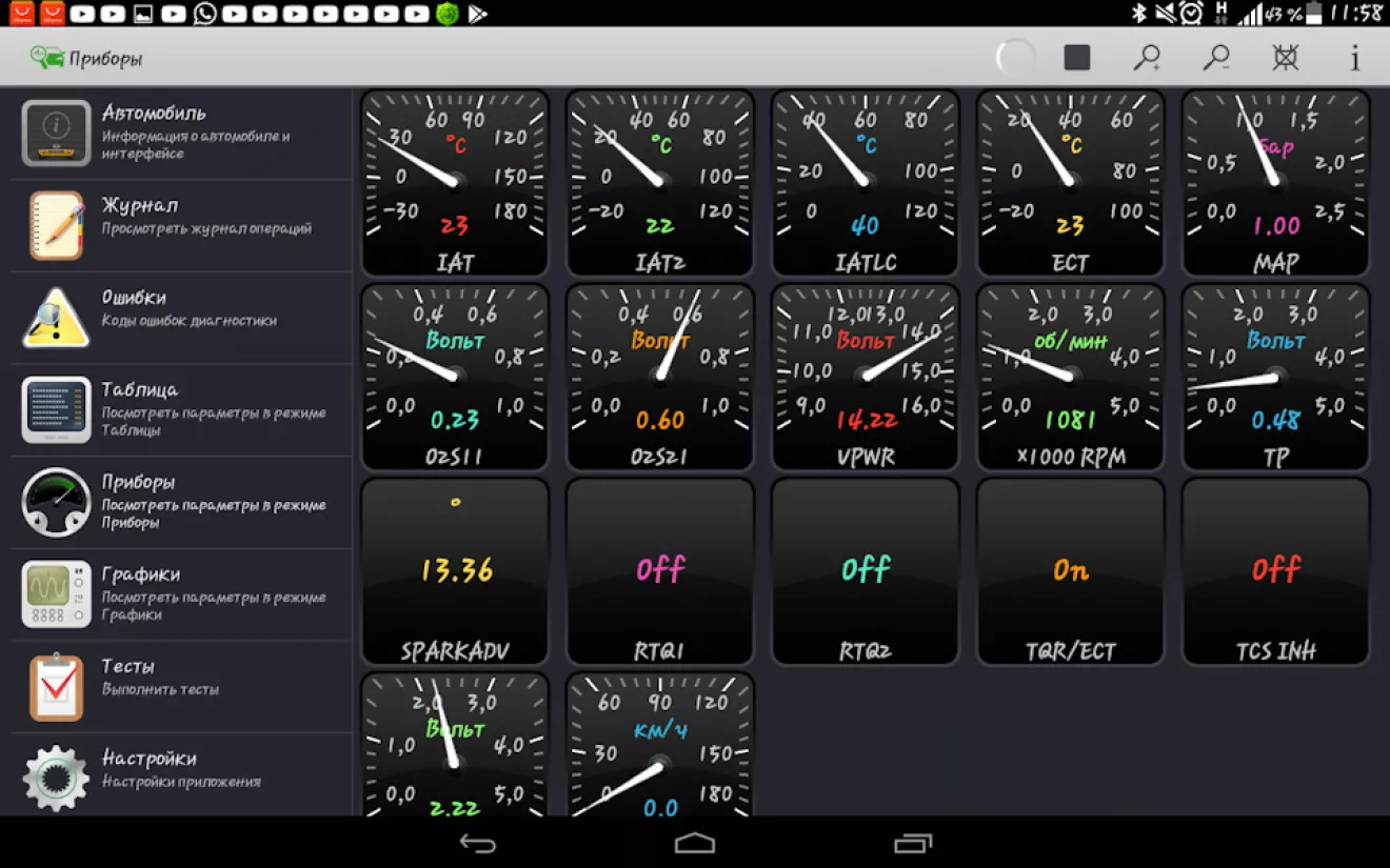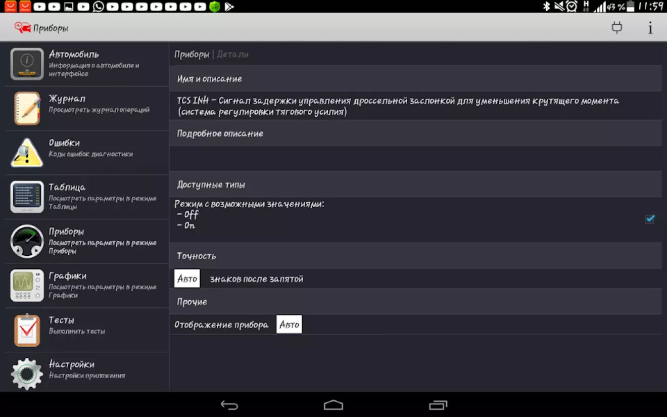 И продолжение! Ехал на село и при подключении форскана обнаружил что все обнулено и ни одного прибора в меню выбора нет. На быструю руку накидал что приблизительно интересует и в путь! Но уже в дороге обратил внимание что каким-то образом вывел на экран приборы по системе регулирования тягового усилия (TCS) и здесь наблюдения стали интересными… Правда в пути скриншоты не делал т.к. за рулем был я, и снять планшет с крепления не очень легко, а добраться нужно было быстро! И уже по свободному времени, сегодня утром запустил авто и поведение датчиков такое же на холостых как и на скорости! Скриншоты ниже. В автомобиле есть система TSC все ее знают как антибукс! По форскану есть несколько ее показаний. 1) RTQ1 -уменьшите сигнал крутящего момента 1, 2) RTQ2 — Уменьшите сигнал крутящего момента 2, 3) TQR/ECT — сигнал на отработку уменьшения крутящего момента, 4) TCS INH — Сигнал задержки управления дроссельной заслонкой для уменьшения крутящего момента (система регулировки тягового усилия). Это дословно скопировано из форскана. Так вот первый и второй пункты постоянно пишет "off", третий пункт постоянно пишет "on", а четвертый пункт, вроде как барабашка с рубильником играет от "on", то "off"! И при этом на приборке постоянно горит сигналка по АБСу и ошибка 17 по АБСу висит и скинуть не получается, при этом что по двигателю ошибок нет и если скинуть какой либо разъем то выскакивает ошибка по датчику с которого сброшен разъем! Мысли будут?