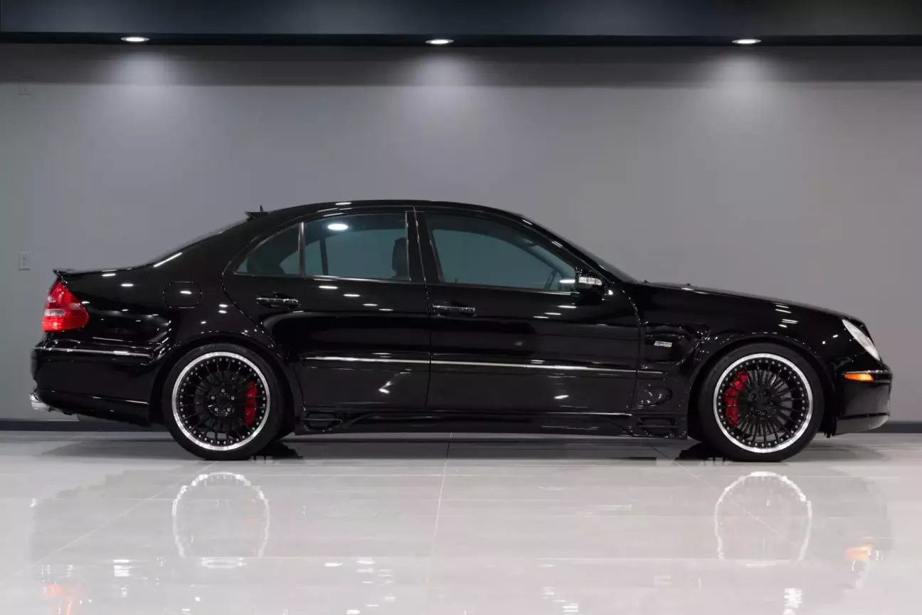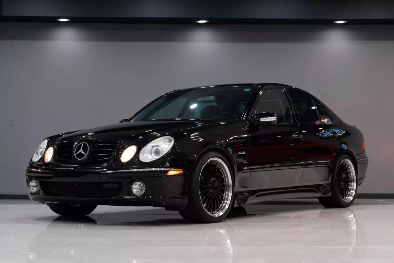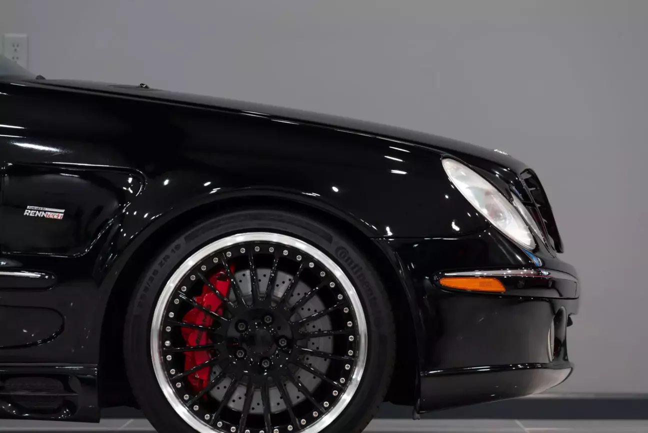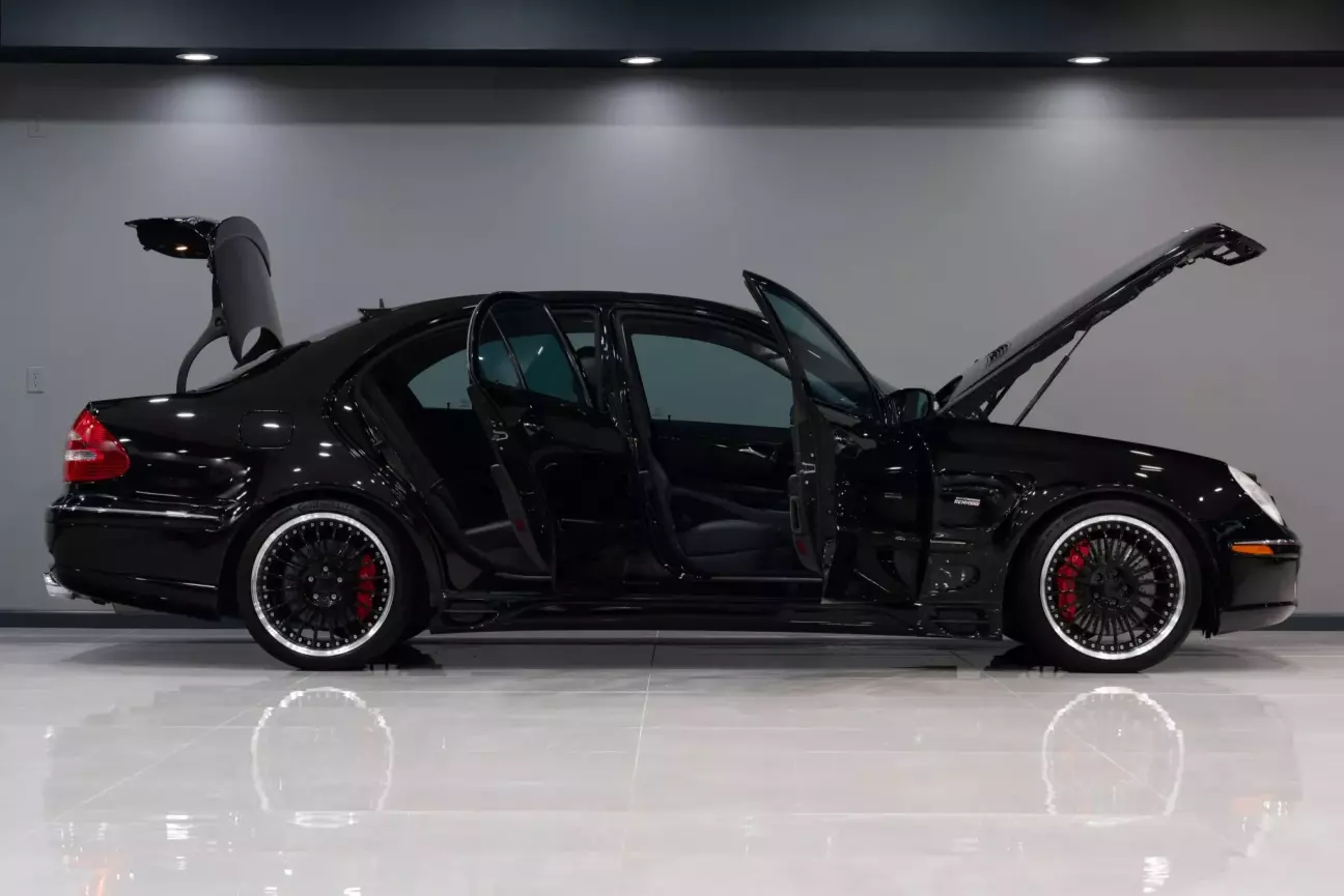 Всім привіт. Хочу познайомити вас із цікавим w211. Mercedes-Benz E55 AMG 2006 року випуску вперше був проданий компанією Contemporary Motor Cars, Inc. у Нью-Джерсі, а згодом модифікований компанією RENNtech у Флориді. Роботи полягали у встановленні вуглецевого впуску на 5,4-літровий двигун V8 з наддувом, зміні пришивки для п'ятиступінчастої автоматичної коробки передач AMG Speedshift та встановленні диференціала підвищеного ковзання. А також у обвісі, та 19-дюймових двосекційних кованих дисках. Даний автомобіль оздоблений чорним кольором, і чорним салоном Charcoal Nappa, оснащений пакетами Premium та Lighting, а також глушниками Lorinser, біксеноновими фарами, панорамним люком, системою Keyless Go, навігацією, аудіосистемою Harman Kardon та передніми сидіннями з підігрівом, вентиляцією та динамічним керуванням. Автомобіль оснащений пневматичною підвіскою Airmatic з подвійним керуванням.