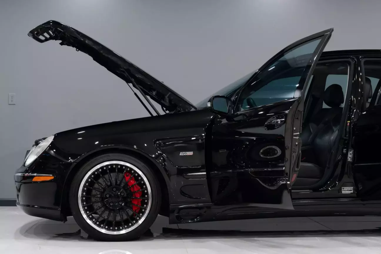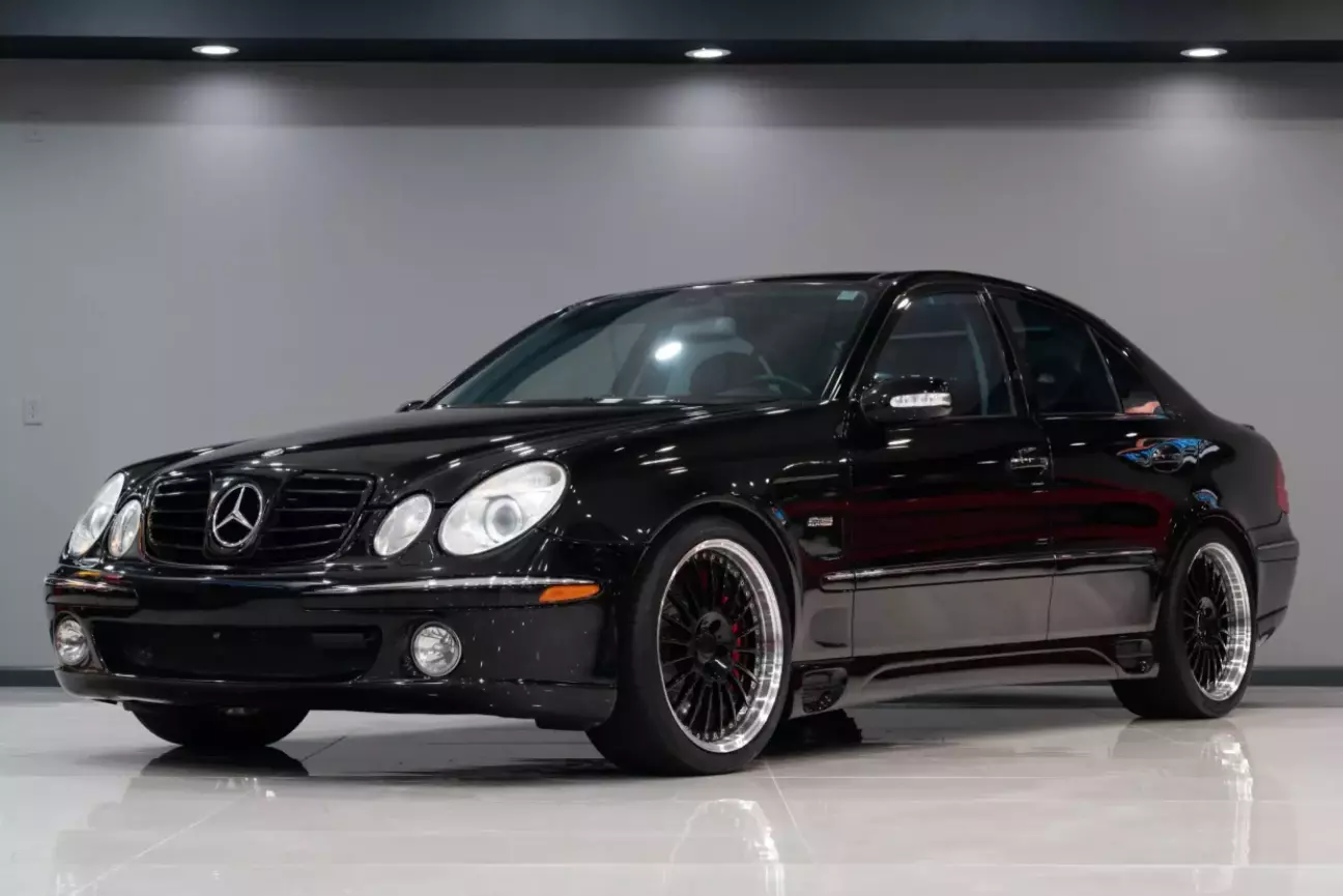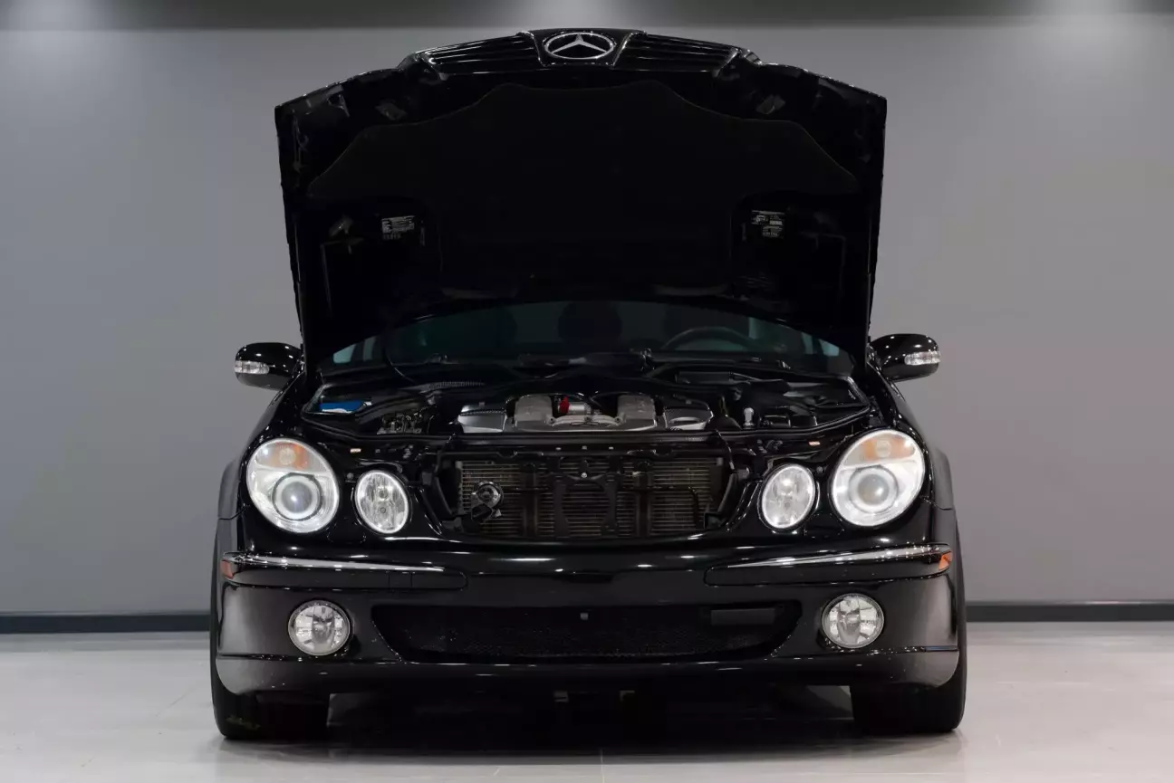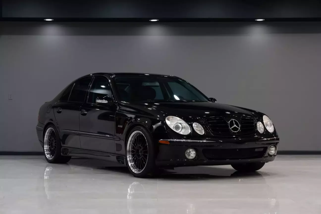 Всім привіт. Хочу познайомити вас із цікавим w211. Mercedes-Benz E55 AMG 2006 року випуску вперше був проданий компанією Contemporary Motor Cars, Inc. у Нью-Джерсі, а згодом модифікований компанією RENNtech у Флориді. Роботи полягали у встановленні вуглецевого впуску на 5,4-літровий двигун V8 з наддувом, зміні пришивки для п'ятиступінчастої автоматичної коробки передач AMG Speedshift та встановленні диференціала підвищеного ковзання. А також у обвісі, та 19-дюймових двосекційних кованих дисках. Даний автомобіль оздоблений чорним кольором, і чорним салоном Charcoal Nappa, оснащений пакетами Premium та Lighting, а також глушниками Lorinser, біксеноновими фарами, панорамним люком, системою Keyless Go, навігацією, аудіосистемою Harman Kardon та передніми сидіннями з підігрівом, вентиляцією та динамічним керуванням. Автомобіль оснащений пневматичною підвіскою Airmatic з подвійним керуванням.