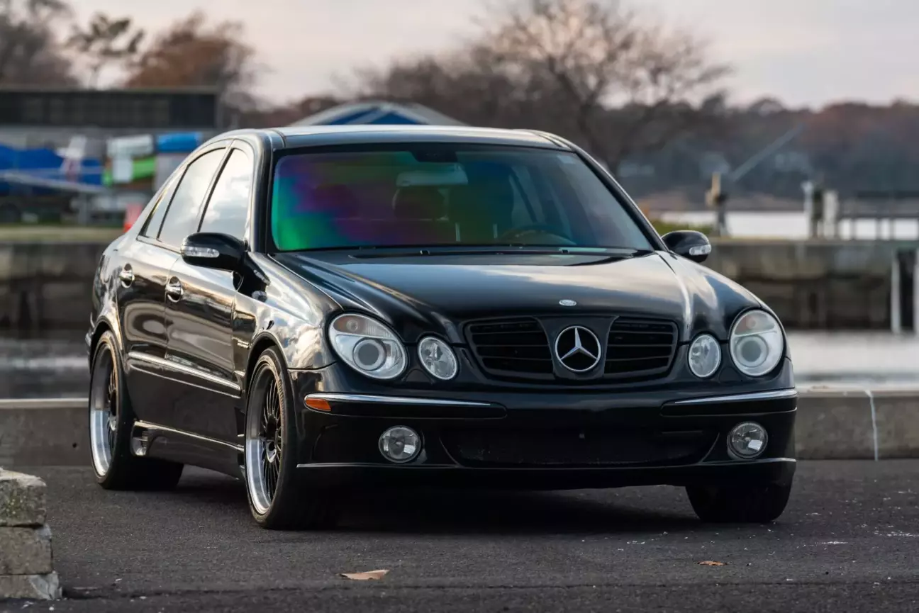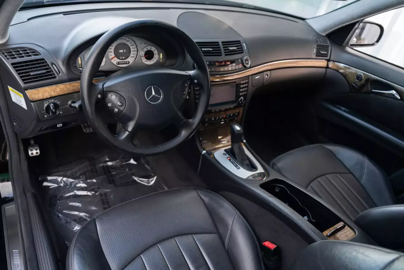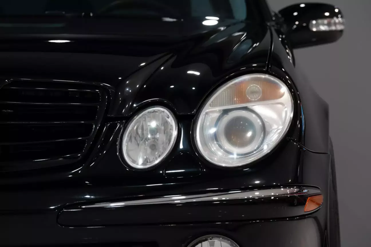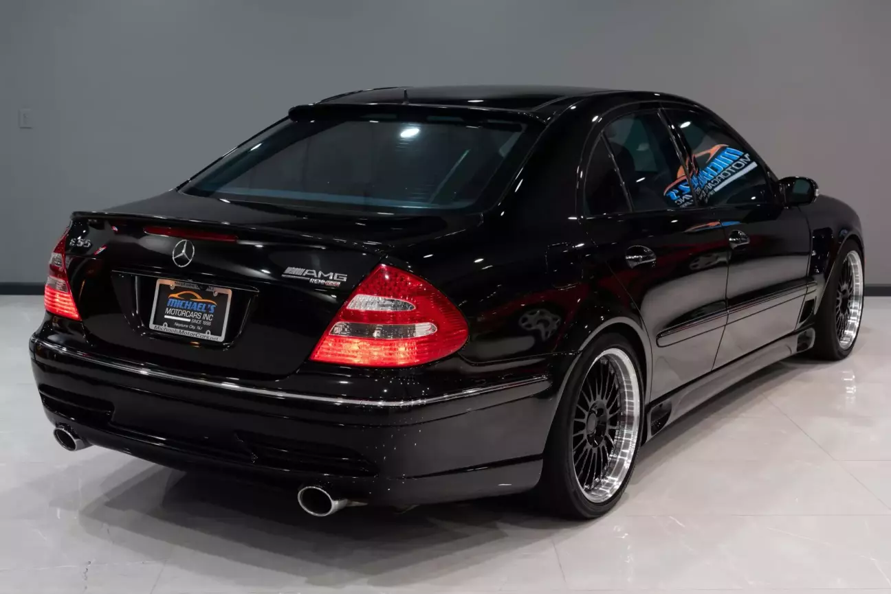 Всім привіт. Хочу познайомити вас із цікавим w211. Mercedes-Benz E55 AMG 2006 року випуску вперше був проданий компанією Contemporary Motor Cars, Inc. у Нью-Джерсі, а згодом модифікований компанією RENNtech у Флориді. Роботи полягали у встановленні вуглецевого впуску на 5,4-літровий двигун V8 з наддувом, зміні пришивки для п'ятиступінчастої автоматичної коробки передач AMG Speedshift та встановленні диференціала підвищеного ковзання. А також у обвісі, та 19-дюймових двосекційних кованих дисках. Даний автомобіль оздоблений чорним кольором, і чорним салоном Charcoal Nappa, оснащений пакетами Premium та Lighting, а також глушниками Lorinser, біксеноновими фарами, панорамним люком, системою Keyless Go, навігацією, аудіосистемою Harman Kardon та передніми сидіннями з підігрівом, вентиляцією та динамічним керуванням. Автомобіль оснащений пневматичною підвіскою Airmatic з подвійним керуванням.