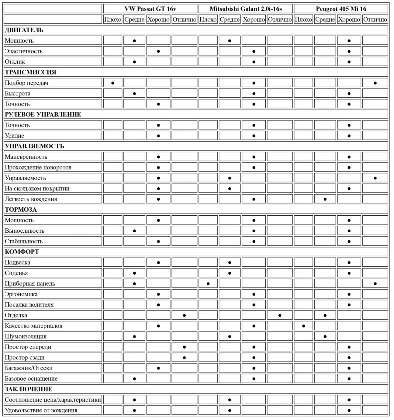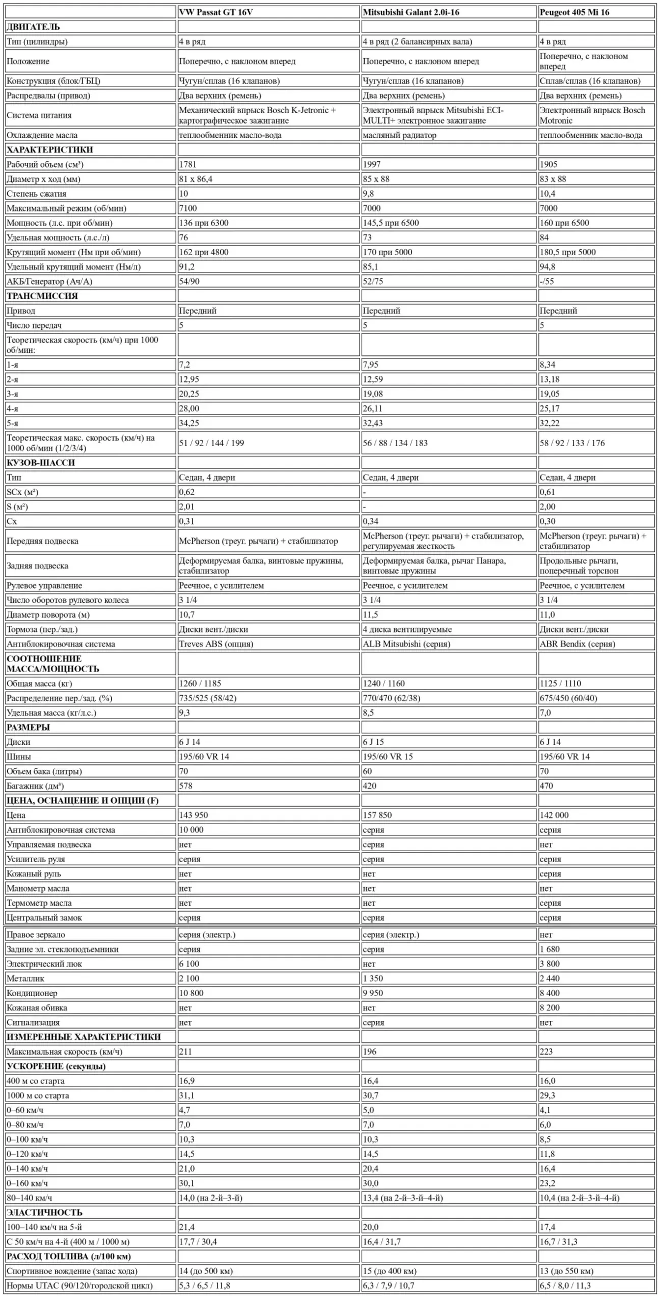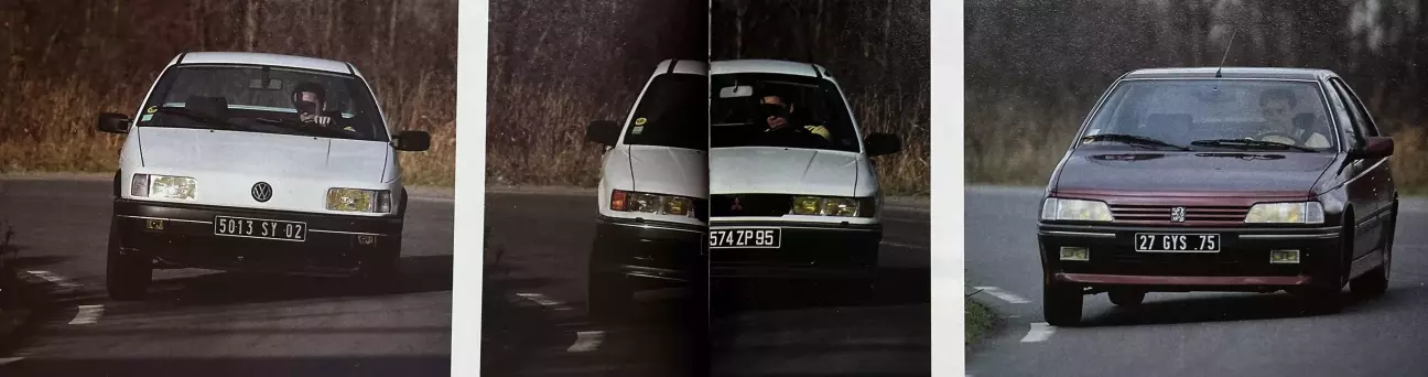 Перевод теста-сравнения Mitsubishi Galant 2.0i-16s vs Peugeot 405 mi16 vs VW Passat GT 16v от французского автомобильного журнального издания Sport-Auto, № 325, Февраль, 1989.