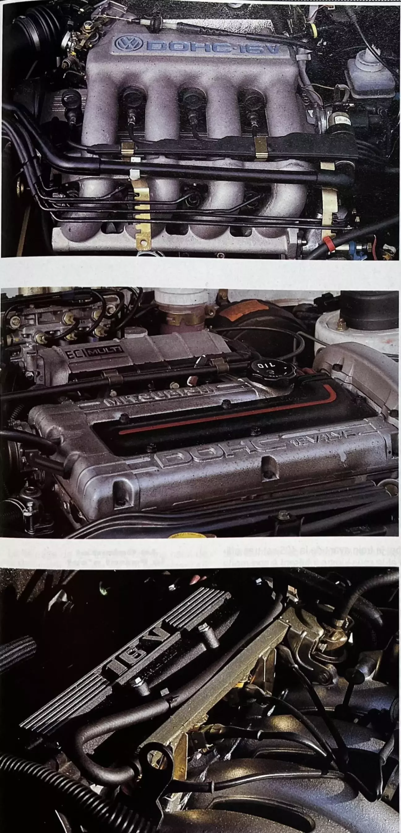 Peugeot 405 скоро отметит 2 года своего существования, но его двигатель, первый французский многоклапанный агрегат, продолжает достойно соперничать со своими конкурентами. Двигатель VW Passat — старый знакомый, поскольку это блок от VW Golf GTI 16S. При переносе он потерял 3 лошадиные силы, вероятно, из-за менее эффективной выпускной системы. Таким образом, он развивает 136 л.с. при 6300 об/мин и обеспечивает максимальный крутящий момент 162 Нм при 4800 об/мин. Эти цифры ставят его на последнее место в этом статическом сравнении. Они являются результатом недостатка объема на 100 см³ по сравнению с двигателем PSA и на 200 см³ по сравнению с Mitsubishi.
