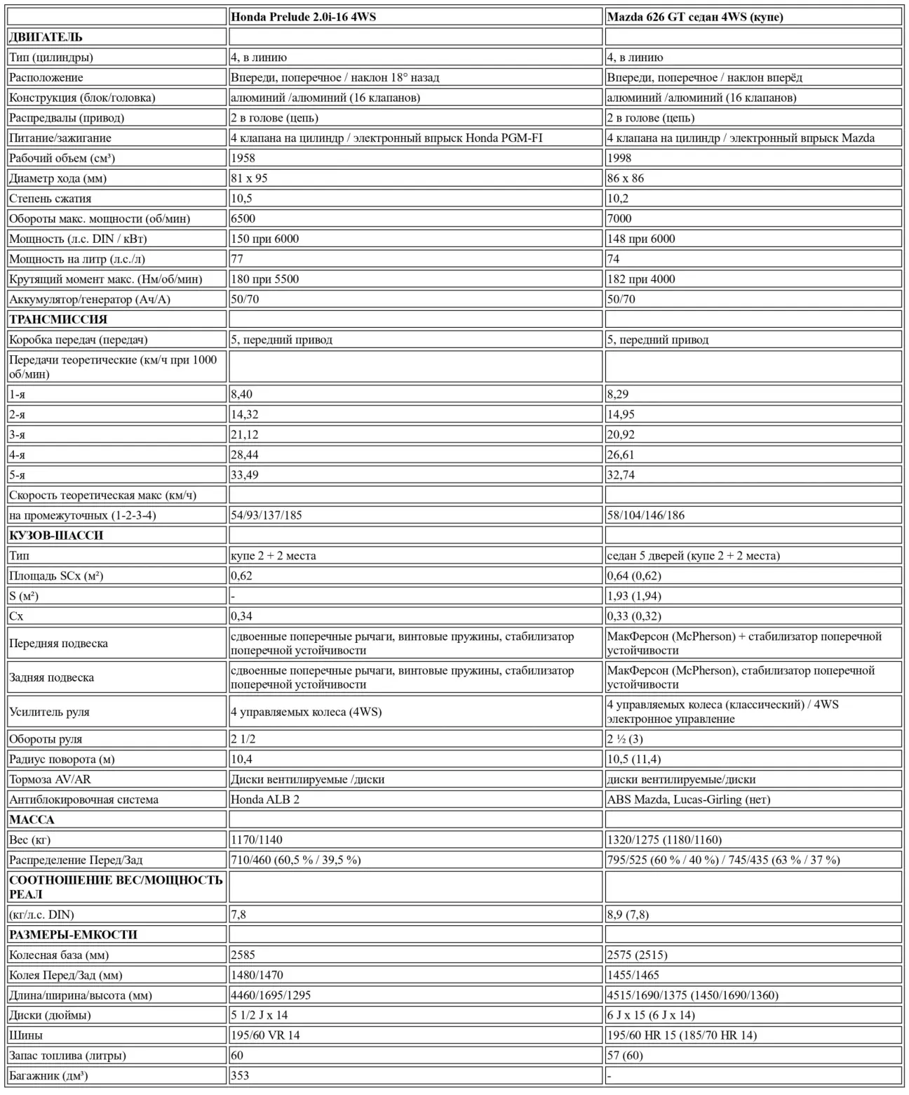 Перевод теста-сравнения Honda Prelude 2.0i-16 4ws vs Mazda 626 GT 2.0i-16 4ws от французского автомобильного журнального издания Sport Auto, № 312, Январь, 1988.