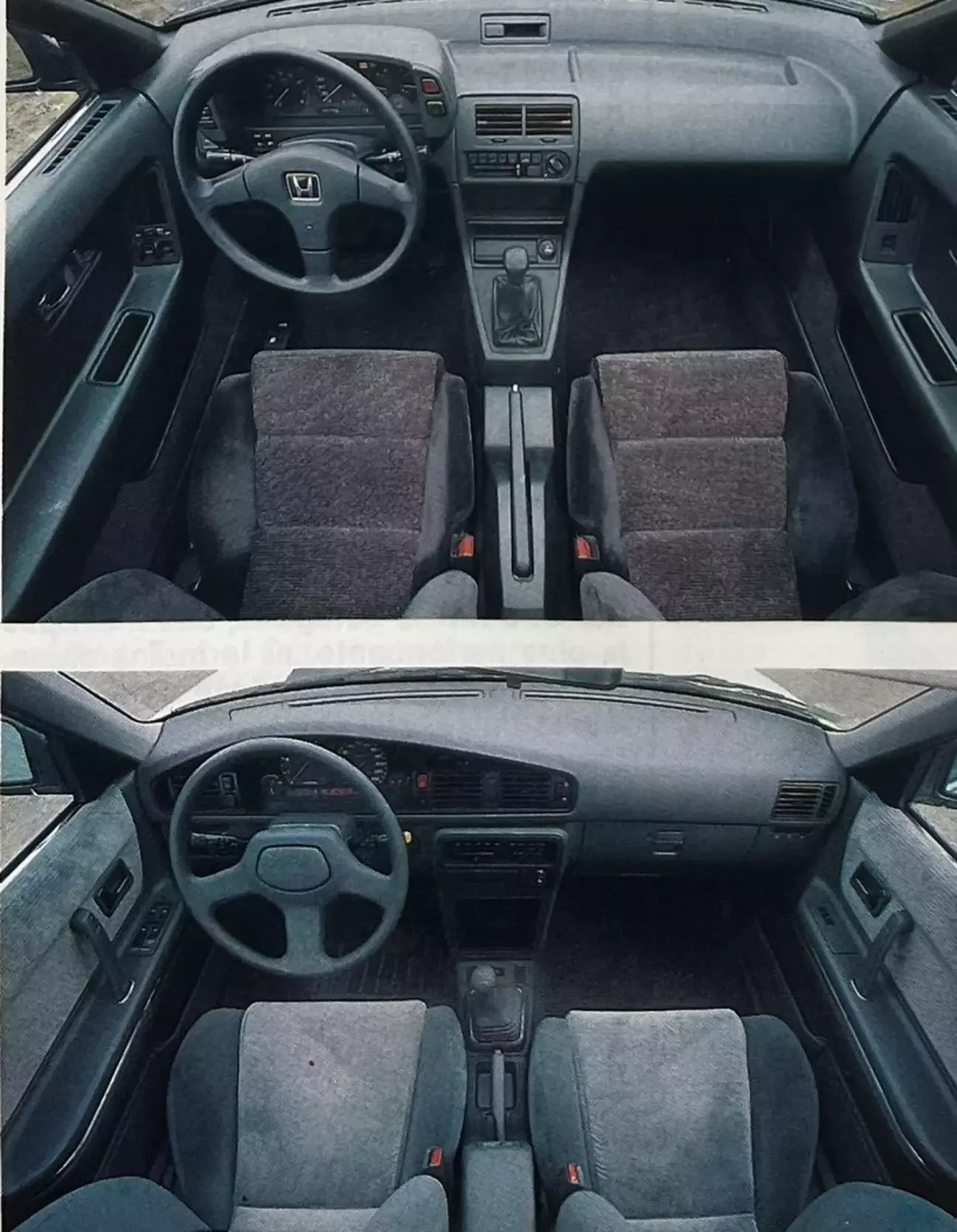 Наряду с Honda, Mazda предлагает электрические стеклоподъемники, центральный замок, электрический люк и т.д. Mazda даже дошла до роскоши, оснастив ее кондиционером в серийной комплектации. Столько усилий со стороны этого производителя, и можно справедливо удивиться, почему 626 такая шумная. Как только превышается 4000 об/мин, шум, издаваемый ее двигателем, быстро становится оглушительным, и это не соответствует имиджу роскоши и комфорта, который Mazda хочет придать этой модели. Honda более сдержанна, и, хотя мы имеем дело с купе, следует отметить замечательную вместительность на передних сиденьях, которая позволяет отличную посадку водителя. Панель приборов обоих автомобилей очень лаконична, но, к счастью, с 4WS мы избегаем цифровой приборной панели купе. Точно так же 4WS не получает систему регулируемой амортизации, также установленную на этом купе. Ее эффективность сомнительна, и поэтому мы не будем на это жаловаться.