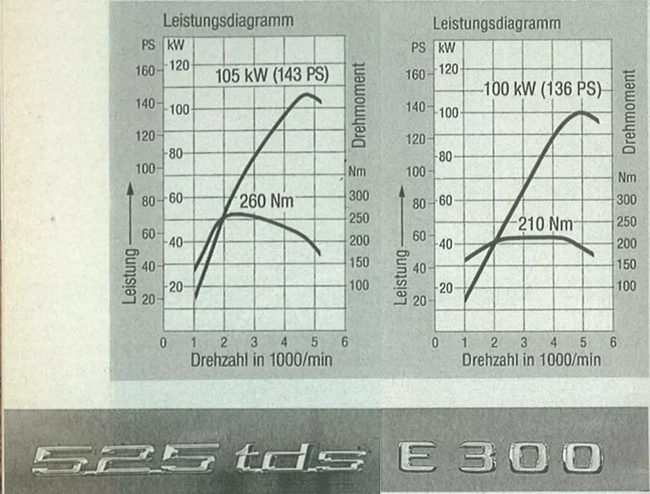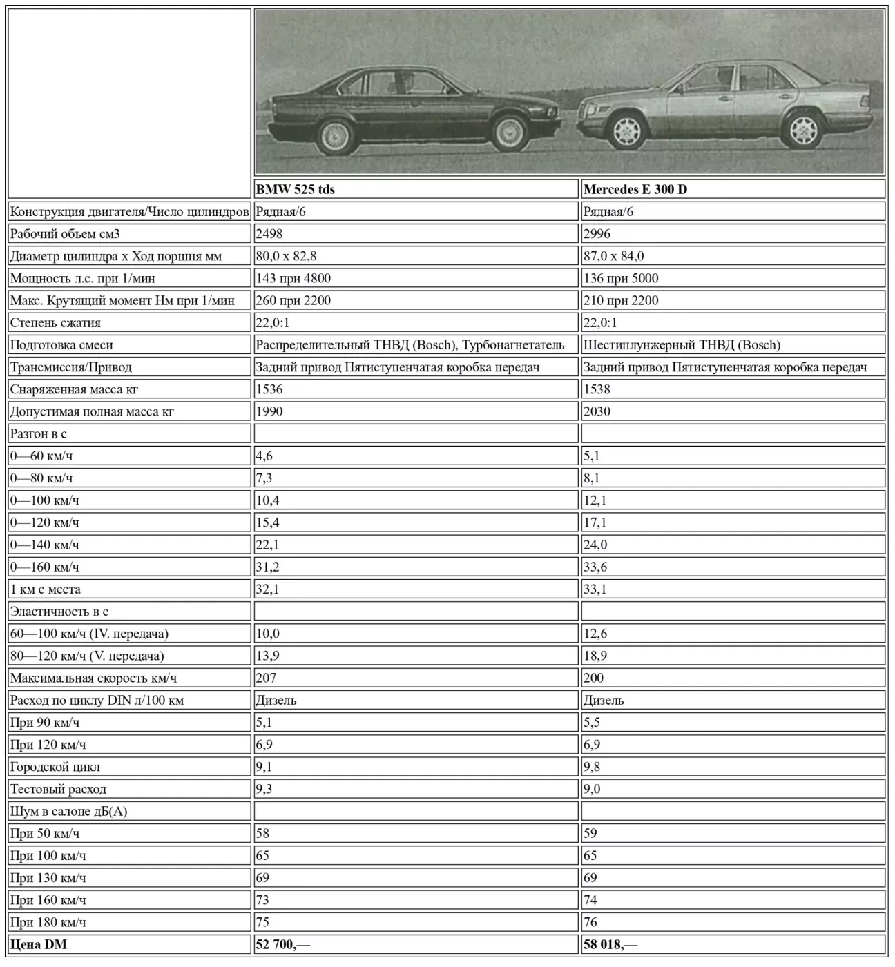 Перевод теста-сравнения BMW E34 525 tds vs Mercedes W124 E 300 Diesel от немецкого автомобильного журнального издания Auto Motor und Sport, № 23, 1993.