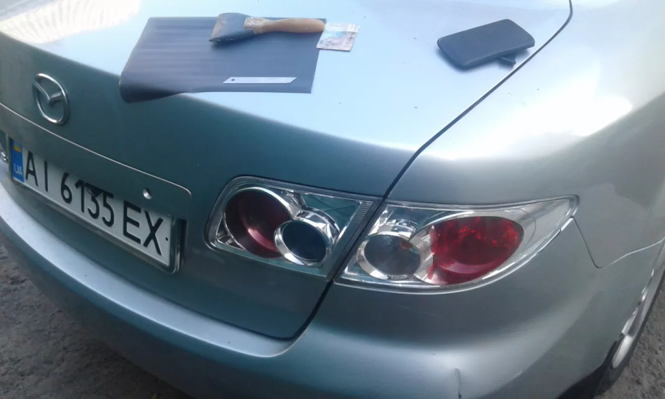 Передние маски задул матовой краской с баллончика. На задние поклеил матовой пленкой.