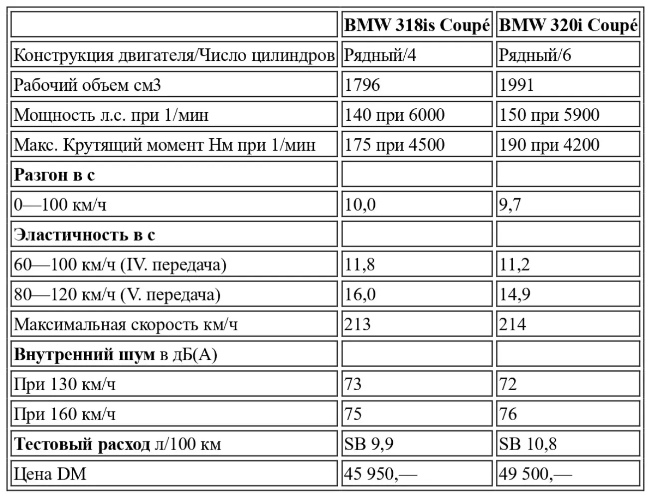 Следуя девизу торговцев «Не хотите ли чего-нибудь побольше?», все больше компаний предлагают шестицилиндровые двигатели для компактных автомобилей. Журнал auto motor und sport исследует, какую пользу и какую цену имеют эти дополнительные затраты на примере купе BMW E36 318is и купе BMW E36 320i.