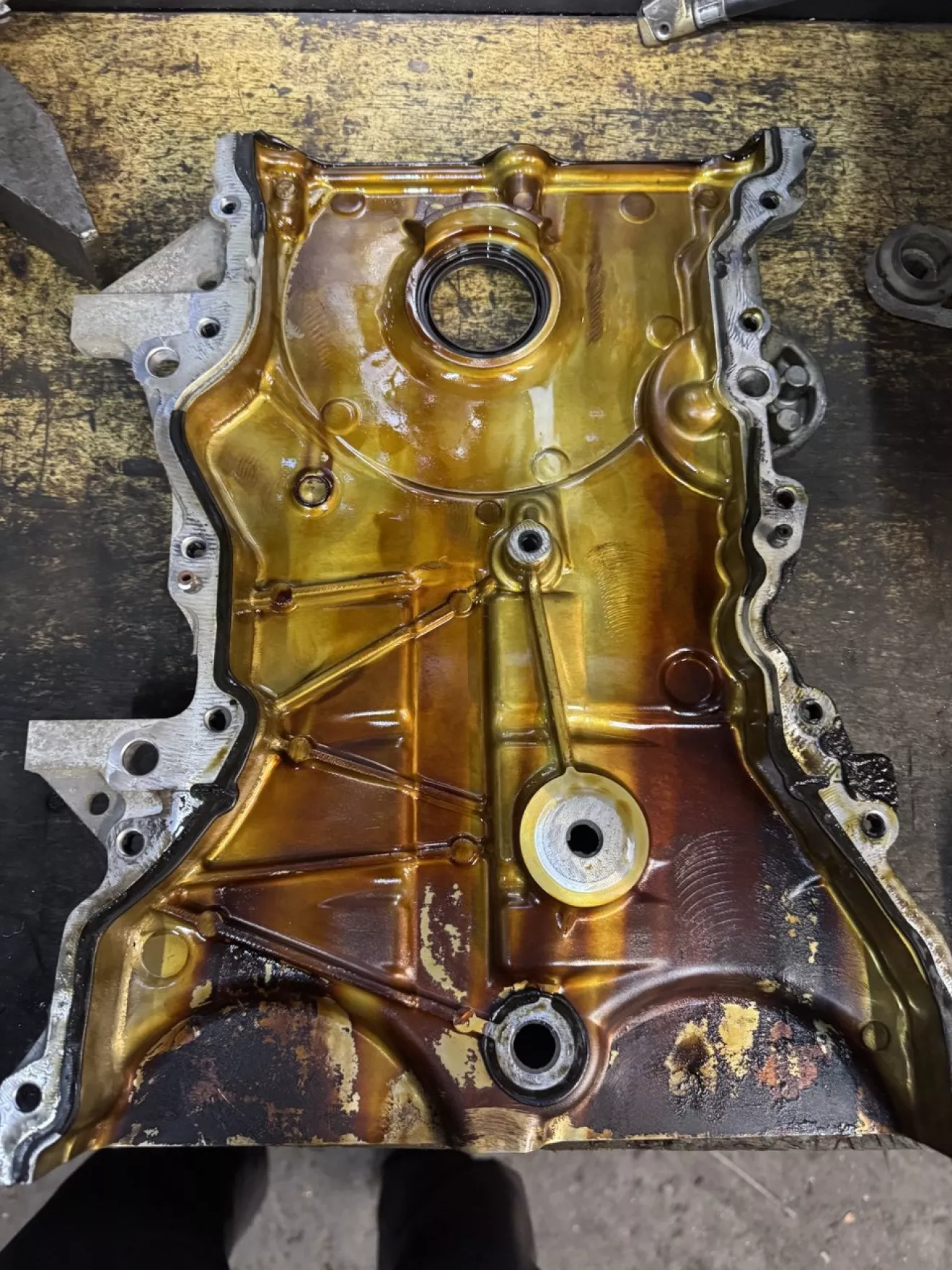 -снимаем опору двигателя, и тут придётся немного по работать обратным молотком так как шкив кв сидит ну очень плотно ну и крышку грм. и вот оно