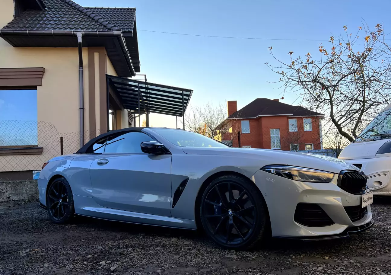 На цьому тижні до нас, із сусіднього міста (Рівне), завітала на тюнінг (встановлення обвісу) дуже гарна BMW 850 (g14) кабріо, в світло-сірому кольорі з чорними глянцевими елементами. Клієнт хотів трішки обновити дизайн авто, додати агресивності в загальний образ.