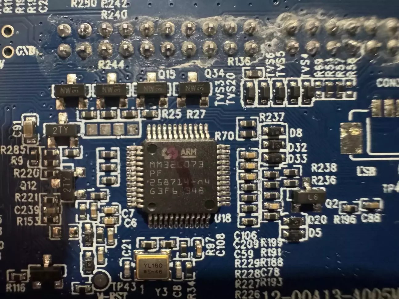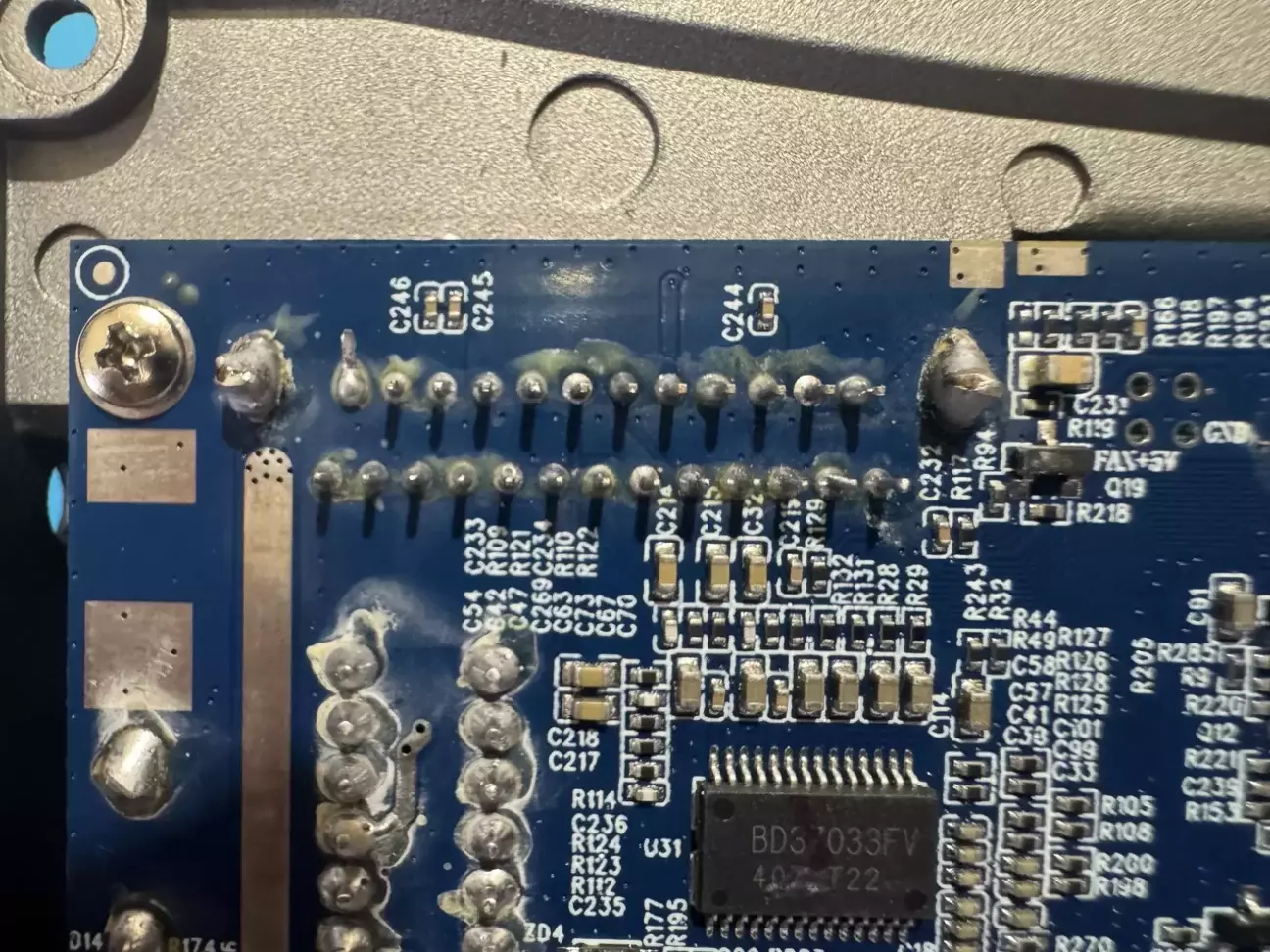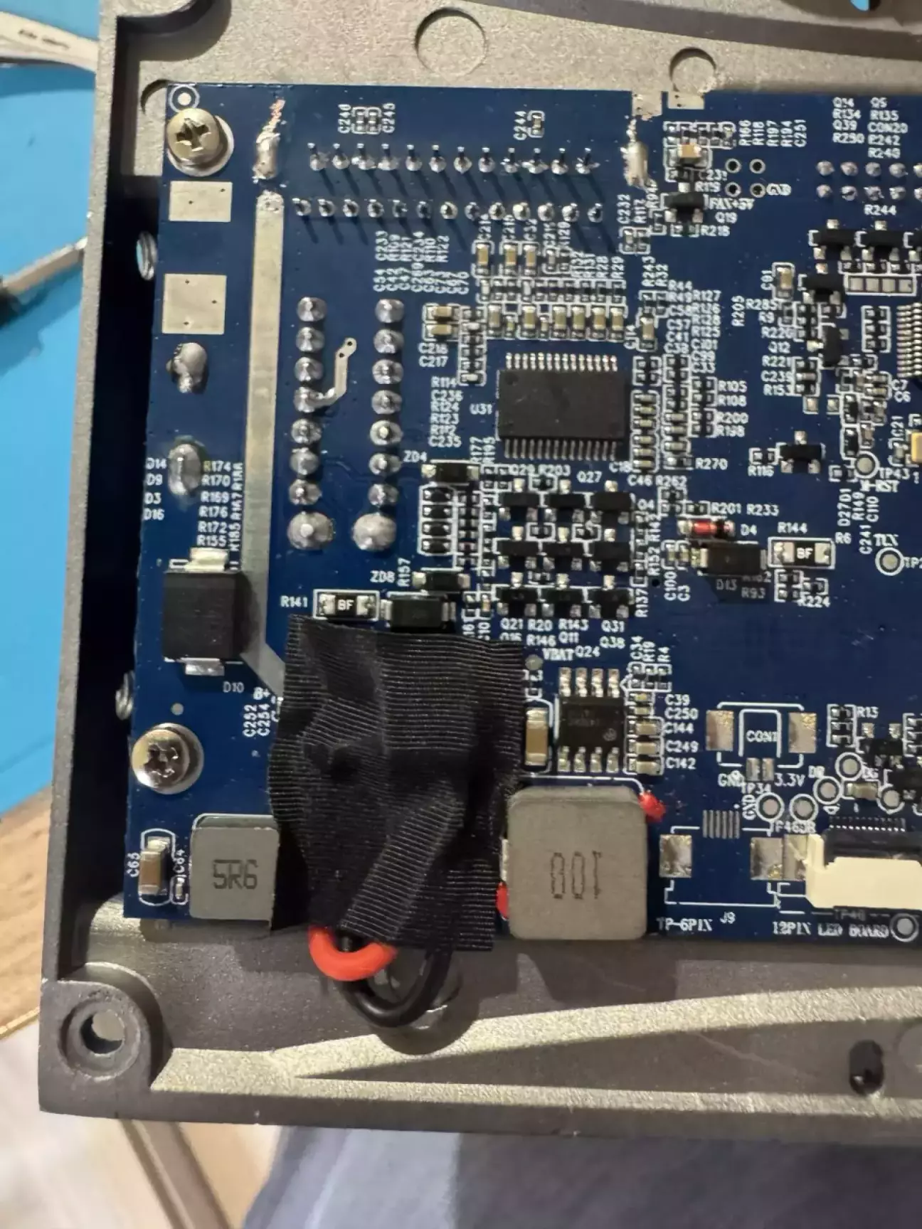 Заклеїли місце де припаялися до конденсатора на платі.
