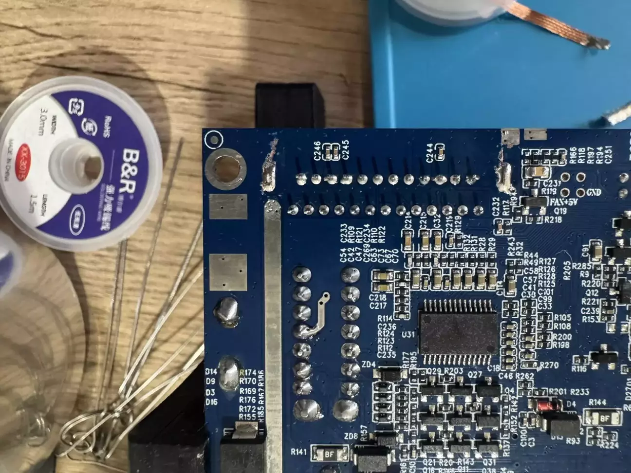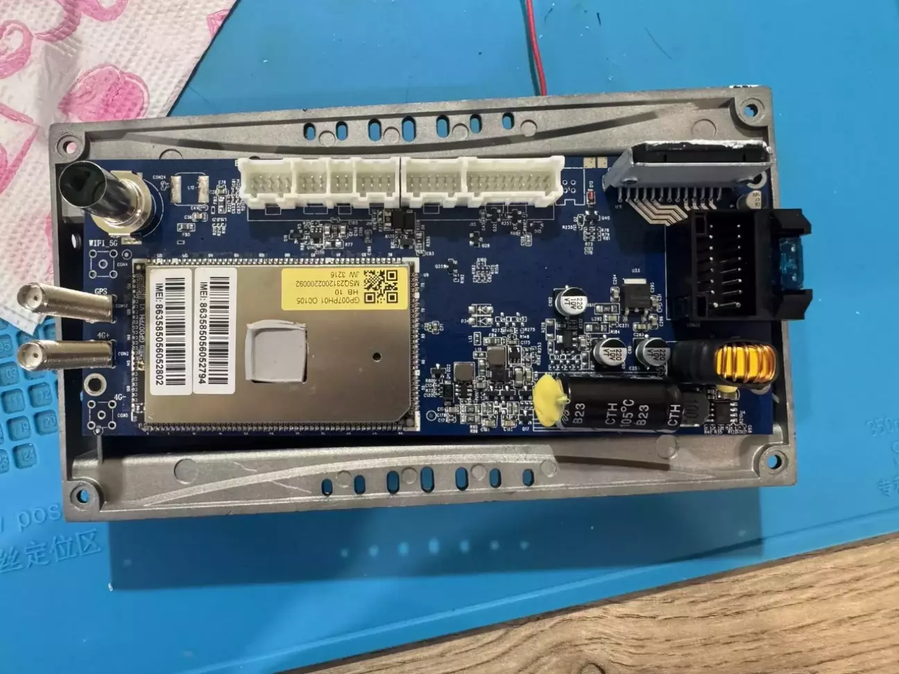 Відкрили, загальний вигляд плати, синя, а не зелена, як попередня.