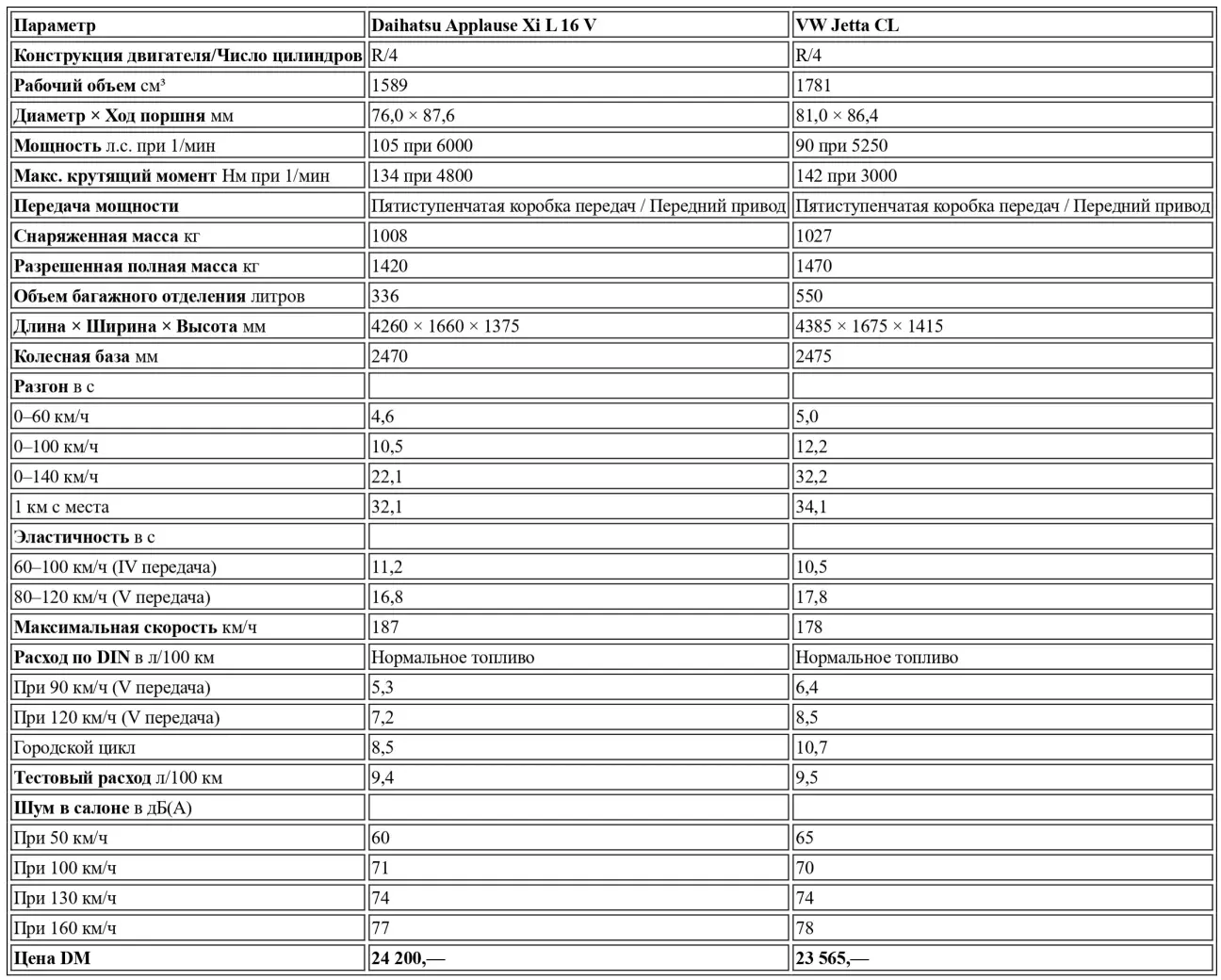 Перевод теста-сравнения VW Jetta 2 CL vs Daihatsu Applause XiL 16V от немецкого автомобильного журнального издания Auto Motor und Sport, № 22, 1989.