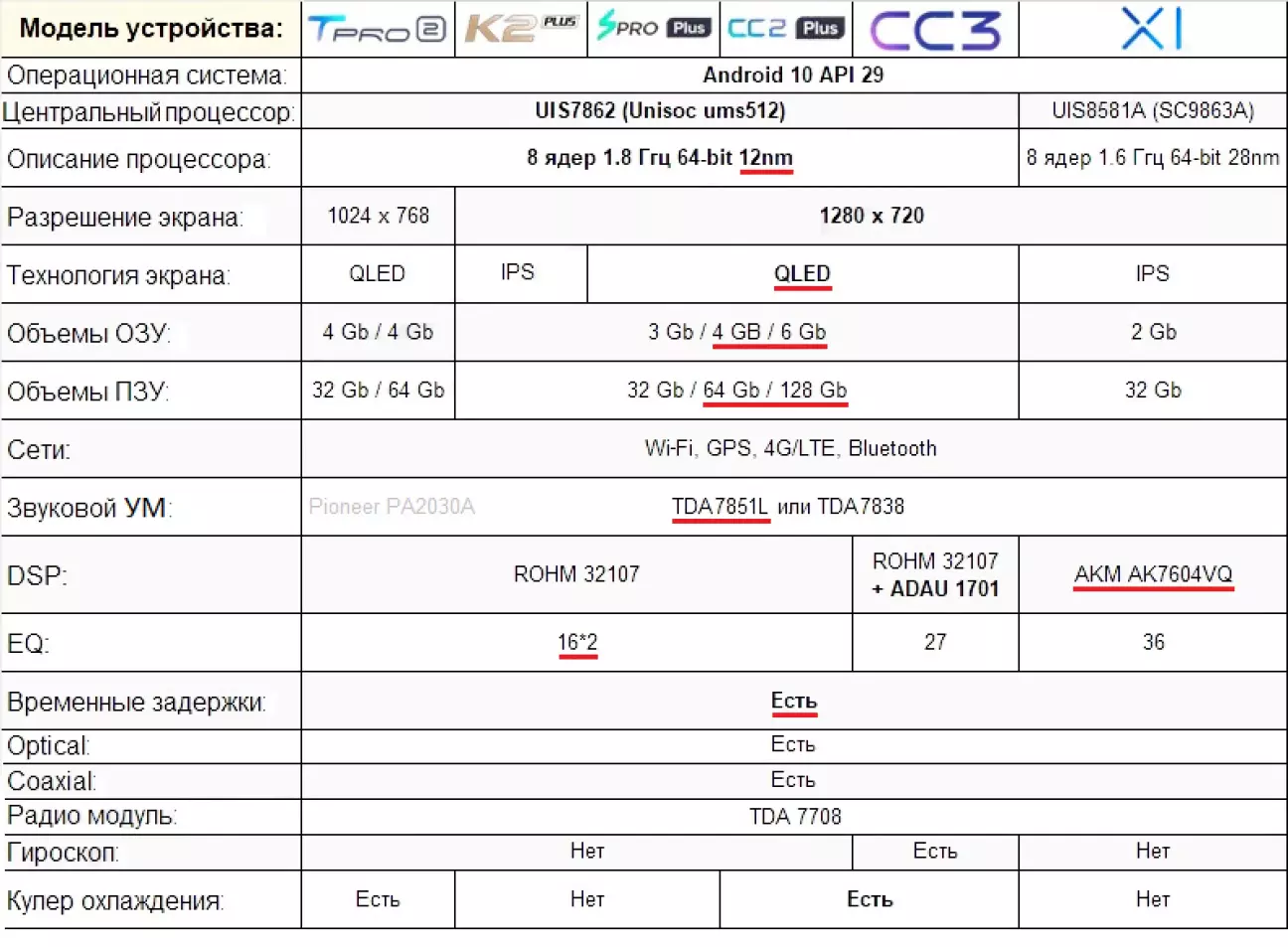 У CC3 доданий DSP ADAU 1701 слідом за поганим DSP ROHM 32107 і весь сенс губиться. У Teyes X1 (не Wi-Fi) встановлений DSP AKM AK7604VQ - він трохи краще (йдеться про рівень звуку комп'ютерних колонок), ніж ROHM32107.