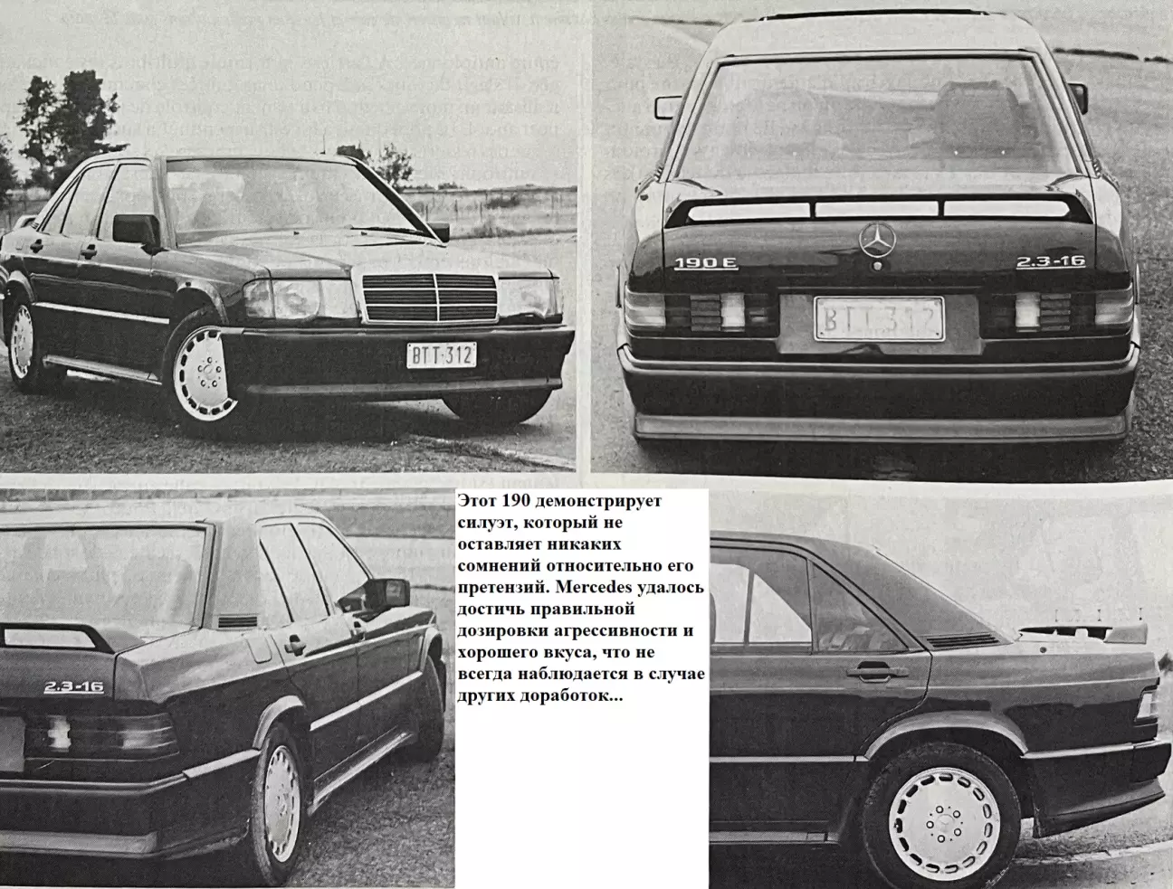 Можно ли действительно сказать, что 190 2.3-16 является для Mercedes тем же, чем 205 GTi, Visa GTi, RS GT Turbo, Uno Turbo являются для Peugeot, Citroën, Renault или Fiat? Несомненно, даже если немецкая марка не одобряет такого рода сравнения! Вспомните ее реакцию, когда пресса назвала 190 «маленьким» Mercedes...