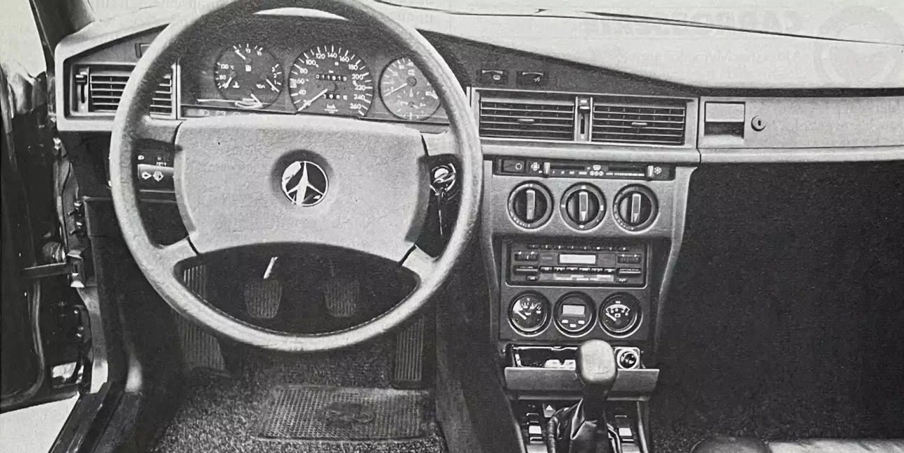 Будущий покупатель этого автомобиля, конечно, не будет иметь тех же забот, что и водитель CX или 505! Поэтому мы должны подходить к этой главе с большой осторожностью и вниманием. Во-первых, потому что этот 190 — автомобиль со спортивным предназначением, пусть и с оттенком буржуазного шарма. А во-вторых, он принадлежит к семейству Штутгарта, которое никогда не славилось своими мягкими подвесками! Тем не менее, впечатление идеальное. Отделка выдает истоки 190, который стал жертвой слишком уж сдержанного, без оригинальности, почти аскетичного подхода. Передние сиденья типа ковш, слегка «цивилизованные». Они механически регулируются во всех направлениях, с регулировкой наклона спинки, глубины всего сиденья и его высоты. Эти регулировки обеспечиваются двойными направляющими, одной горизонтальной, другой наклонной. Это означает, что изменение высоты сиденья требует двух операций, с отводом или приближением при опускании или подъеме сиденья, которые затем необходимо корректировать. Желательна была бы более простая система. Напомним, что рулевое колесо не регулируется, что перекладывает всю ответственность за регулировку на сиденье. Сзади диван — с той же обивкой, что и спереди — выглядит как двойной ковш, разделенный убирающимся центральным подлокотником. Его достаточно для двух человек при условии, что водитель и его первый пассажир не слишком высокие. В противном случае места для ног будет недостаточно.