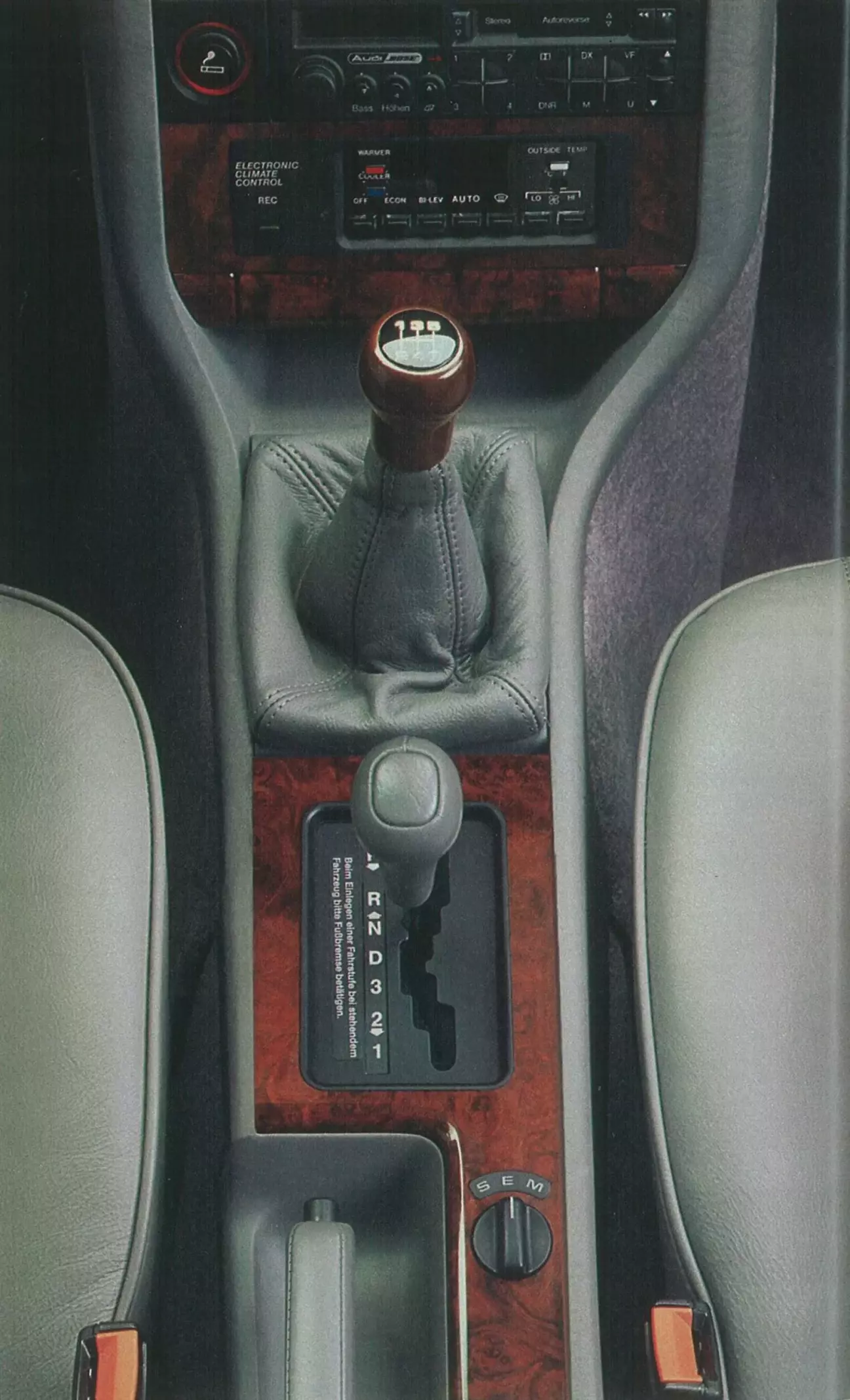 То, что механическая коробка передач все же никогда не сможет достичь удобства управления автоматической коробкой, не требует объяснений. Автомат ZF в Audi V8, который в обычном режиме переключает передачи почти незаметно, соответствует высоким ожиданиям в отношении комфорта. Если выбрать программу переключения с буквой S, она переключается вверх позже и вниз раньше, что соответствует спортивному стилю вождения. Однако постоянная суета переключений иногда вызывает неприятную нервозность, в том числе и на автомагистрали, где автомат переключается вниз уже при небольших движениях педали акселератора и затем упорно зависает на оборотистой третьей ступени. Более спокойно можно ехать в программе E, при необходимости используя ручное переключение с помощью немного тугого рычага селектора.
