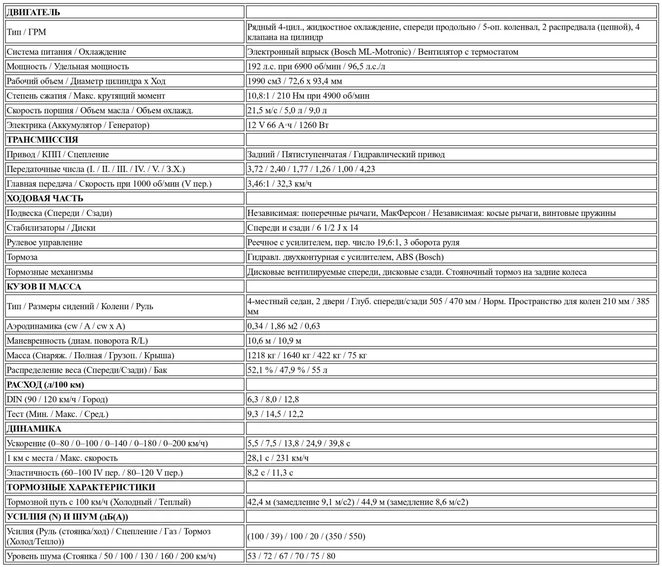 Силовой агрегат: Мощный на низах и охотно раскручивающийся четырехцилиндровый двигатель с очень хорошей отзывчивостью и приятной акустикой, очень хорошие динамические характеристики, маловибрационный ход без раздражающих гудящих частот, легко и точно переключаемая пятиступенчатая коробка передач, очень хороший подбор передаточных чисел.