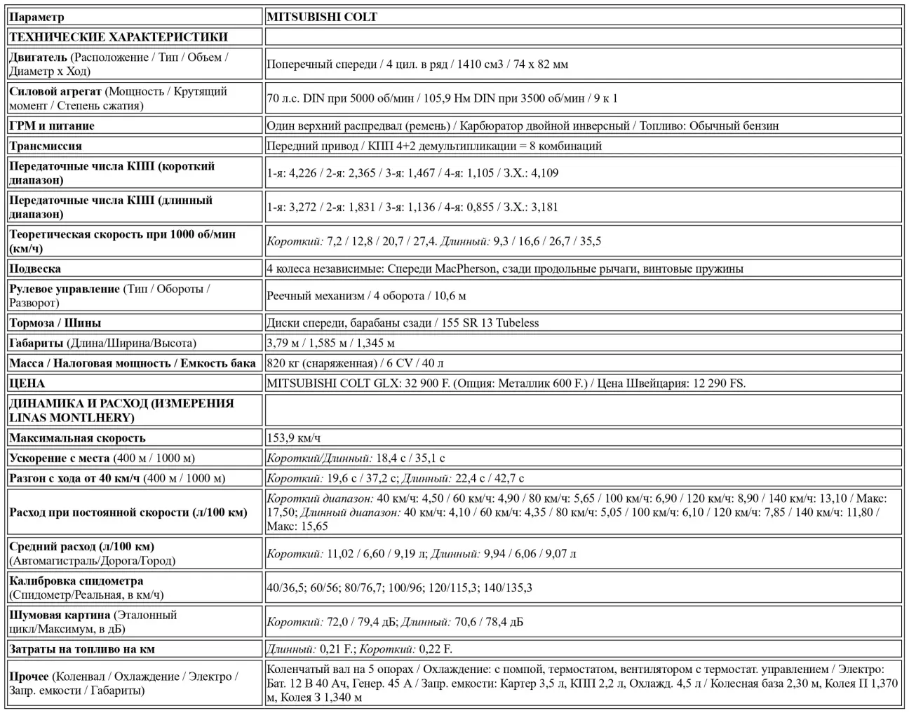 Перевод теста Mitsubishi Colt от французского автомобильного журнального издания L'Automobile, № 396, Июнь, 1979.