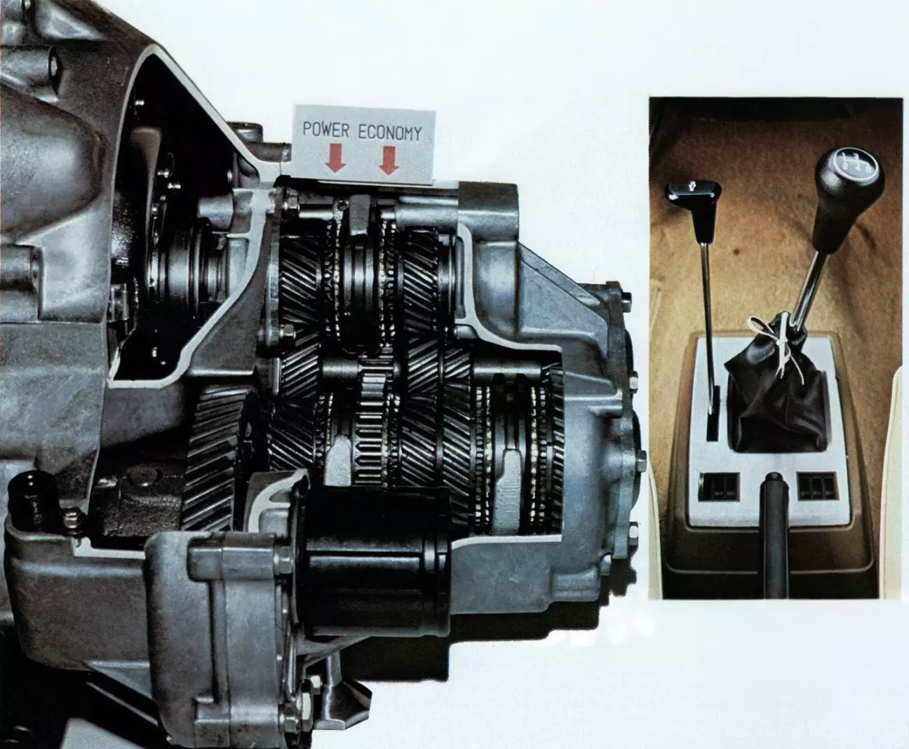 На основе классической четырехступенчатой коробки передач мы получаем восемь комбинаций благодаря демультипликатору с ручным управлением, расположенному на входе в коробку. Представьте себе свой велосипед с четырьмя скоростями на переключателе и двойной звездочкой на педалях. С технической точки зрения, мощность передается через первичный вал, на котором расположены две передачи, соответствующие положениям: мощность (короткое передаточное число) и экономия (длинное передаточное число). Эти две шестерни включаются посредством синхронизатора, идентичного тем, что используются для обычных передач. Следовательно, необходимо выжимать сцепление, как при переключении передач, чтобы перейти от короткого передаточного числа к длинному и наоборот. Таким образом, разница в передаточном числе между коротким и длинным диапазонами составляет почти 30%. Например, четвертая короткая передача обеспечивает скорость 27,4 км/ч на 1000 об/мин, а четвертая длинная — 35,5 км/ч.