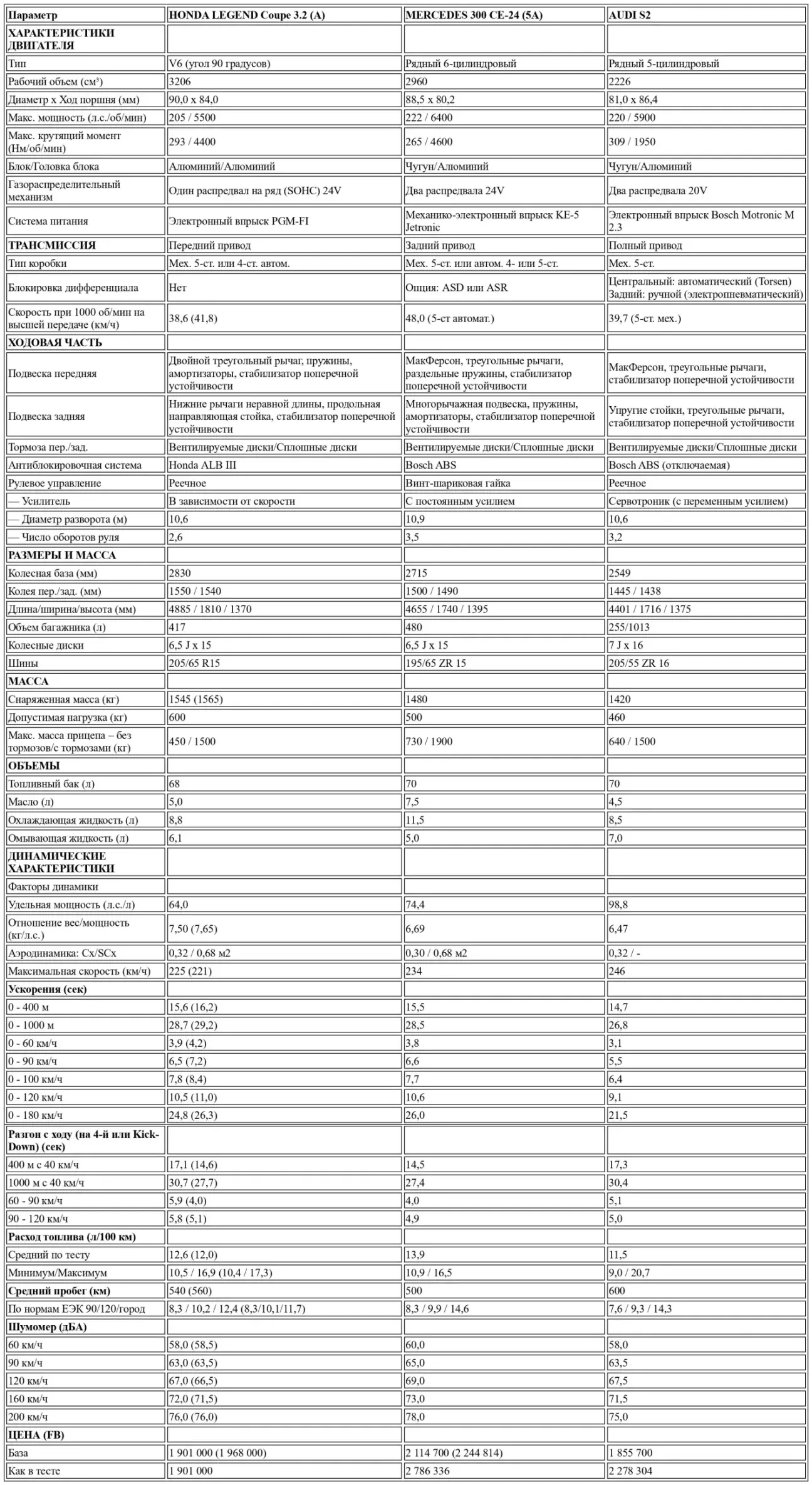 Перевод теста-сравнения Honda Legend Coupe vs Mercedes C124 300 CE-24 vs Audi S2 от бельгийского автомобильного журнального издания Le Moniteur de l’Automobile, № 987, Октябрь, 1991.