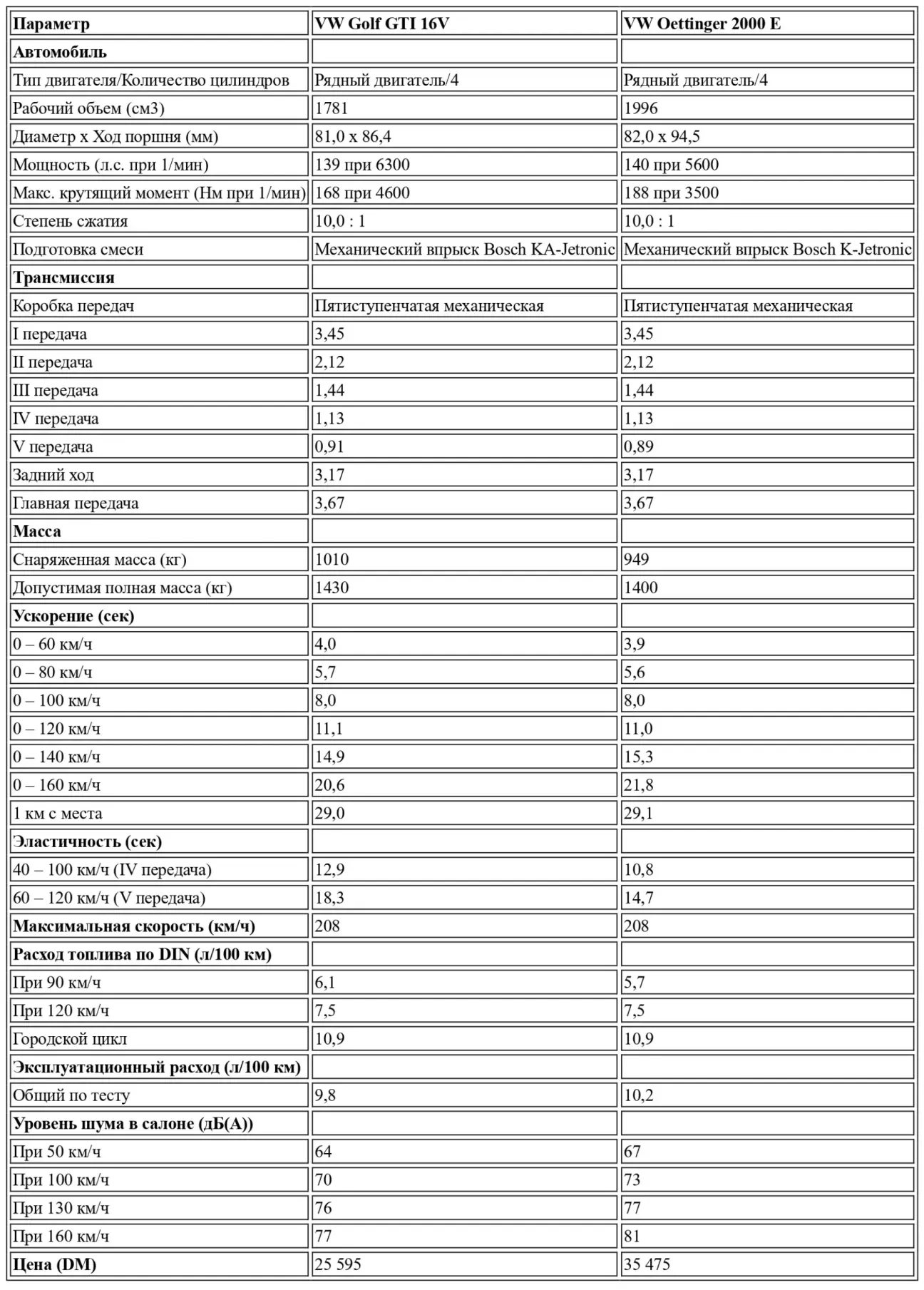 Вывод очевиден: тот, кто отказывается от тюнинга шасси и ограничивается модификациями двигателя, получает в лице Oettinger 2000 E удачную альтернативу новому GTI 16V. И VW, и Герхард Эттингер приняли решительные меры. Тот, кто водит с умом, получит удовольствие от вождения обоих автомобилей.