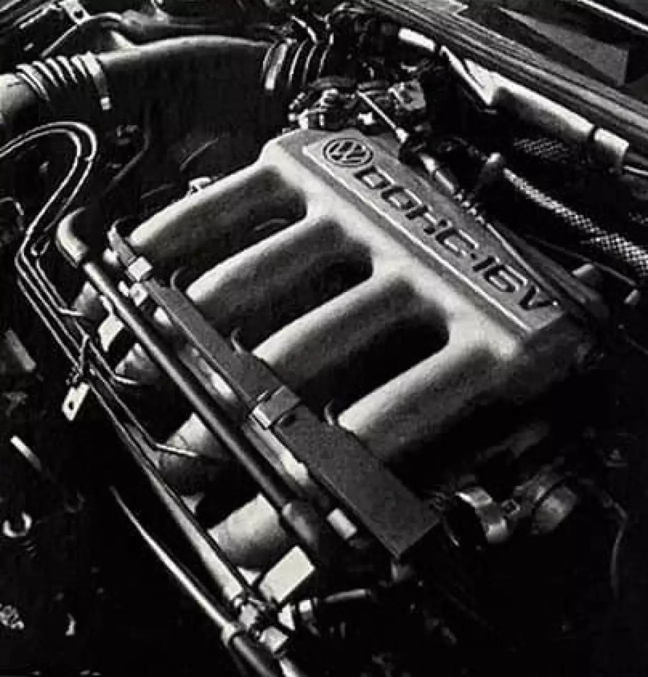 Чтобы компенсировать дополнительный вес Passat (на 209 кг больше, чем у Jetta), старый 4-цилиндровый двигатель GTI/GLI был расточен и получил увеличенный ход поршня до 1984 куб. см. С диаметром цилиндра 82,5 мм и ходом поршня 92,8 мм, последний 4-цилиндровый двухвальный двигатель (который появится в Golf и Jetta GTI/GLI в начале 1990 года) развивает 134 л.с. и 180 Нм крутящего момента, что на 11 лошадиных сил и на 17 Нм больше, чем у версии объемом 1780 куб. см прошлых лет. Дозирование топлива, зажигание, угол опережения зажигания и все остальное, что касается работы двигателя, контролируется последней системой от Bosch — CIS-E Motronic, которая позволяет силовому агрегату использовать высокую степень сжатия 10,8:1 и работать надежно.