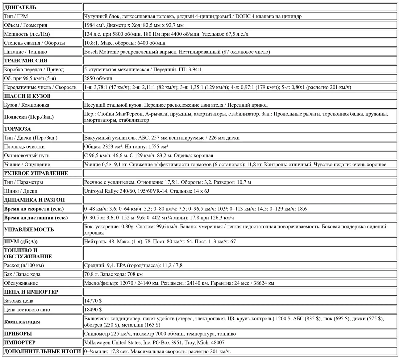 Перевод теста VW Passat B3 GL от американского автомобильного журнального издания Road & Track, Март, 1990.