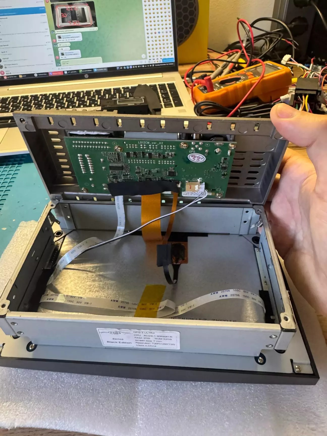 Перша складність - короткий шлейф від матриці 1024х600 7ми дюймового дисплею. Всі мультимедіа, що мають потовщений корпус треба відхиляти мат плату дуже обережно, бо воно отак відхиляється і я реально хоч і тертий калач, кілька місяців тому прикінчив дисплей клієнта розбиравши подібного конструктиву пристрій.