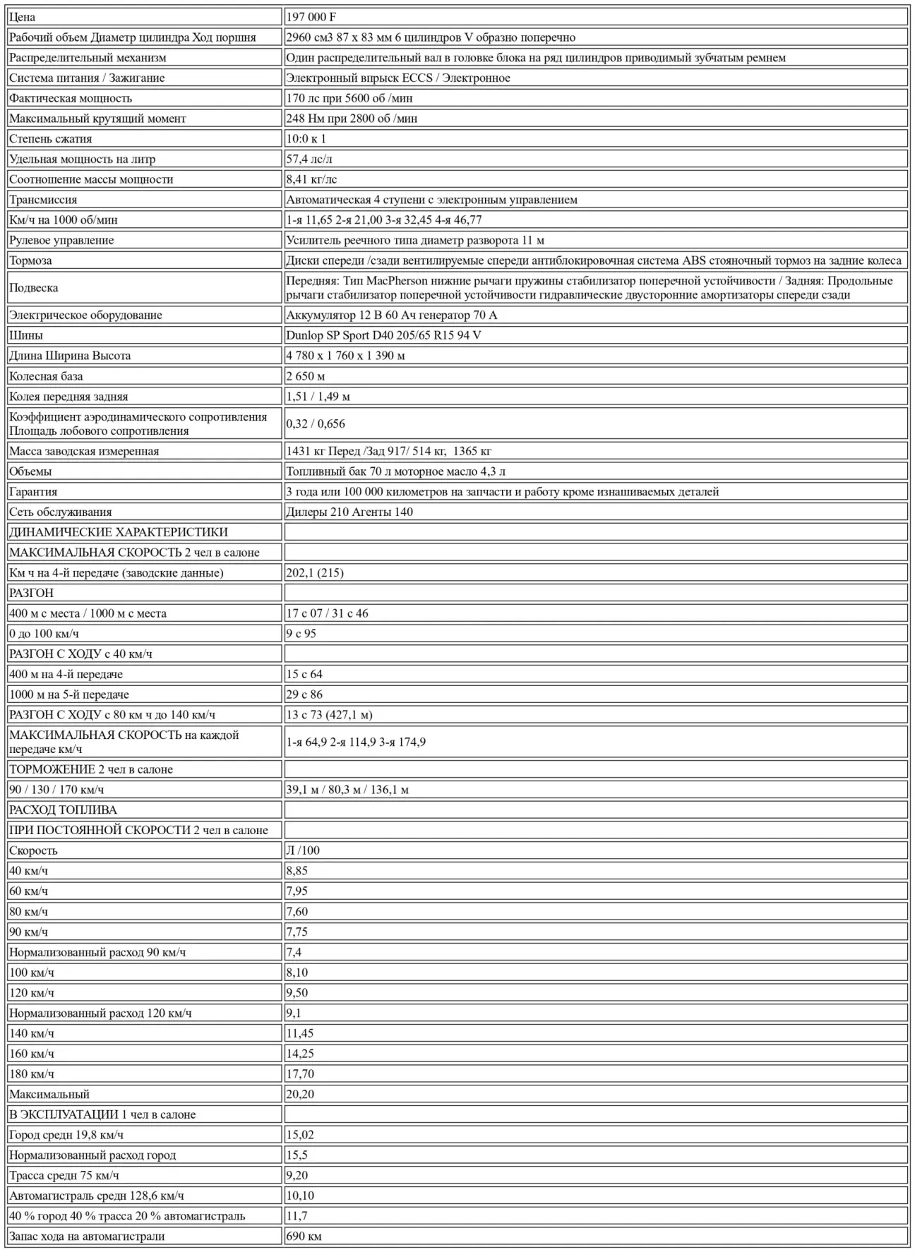 Таким образом, Maxima является отличной основой для оценки — или, вернее, для составления предварительного мнения — о новом Citroën. Несмотря на ее благоприятную аэродинамику и хотя Nissan заявляет 215 км/ч (225 км/ч для моделей с механической коробкой), мы лишь слегка преодолели 200 км/ч, достигнув очень точной скорости 202,1 км/ч. Этот показатель слишком скромен, даже разочаровывает, не только по сравнению с заявленными производителем цифрами, но особенно по отношению к калибру мотора, поскольку многие производители предлагают лучшие характеристики с моторами всего 2,5 л.