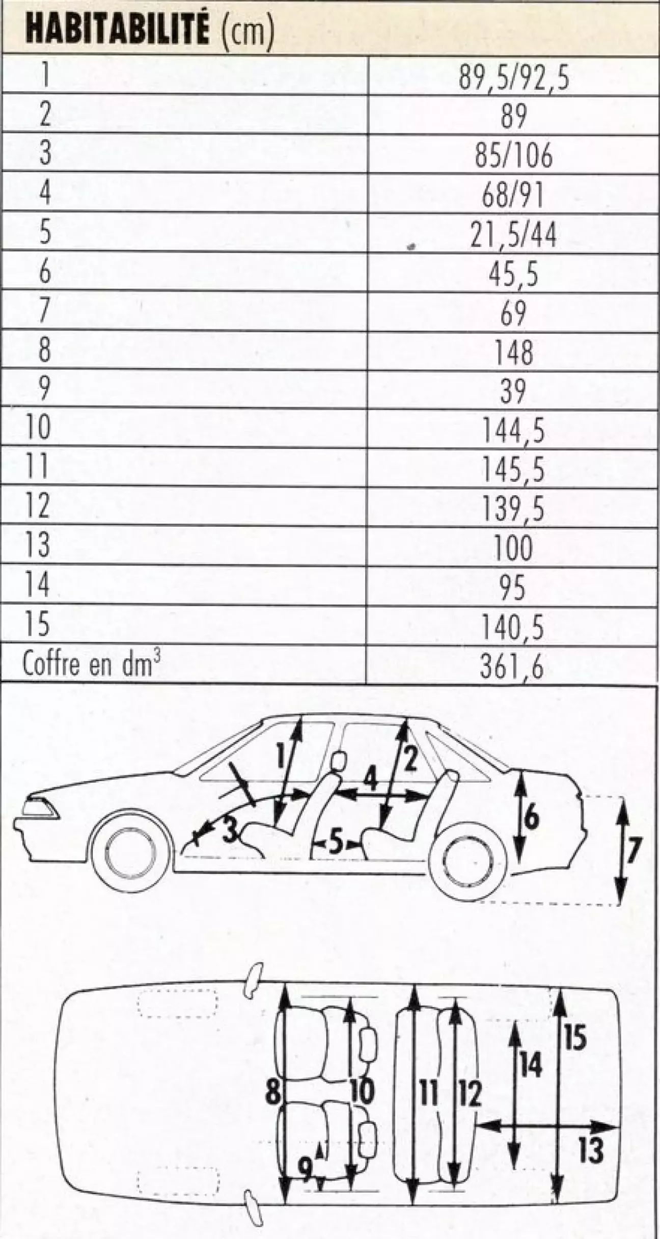 Привлекает она и своим сдержанным кузовом — возможно, слишком сдержанным — но элегантным. Maxima имеет плавные линии, без агрессивности, которым, тем не менее, недостает доли индивидуальности, особенно в области решетки радиатора. Вся задняя часть подчеркнута широкой пластиковой полосой с затемнением, которая объединяет два красных фонаря. Но этот декоративный элемент очень электростатичен и быстро собирает дорожную пыль, поднимаемую автомобилем. С длиной 4,78 м и шириной 1,76 м, Maxima вписывается в габариты Volvo 760 и превосходит на несколько сантиметров, но совсем немного, BMW 5-ой серии и Mercedes 200/300. Ее размеры также близки к размерам будущего Citroën XM, и мы увидим, что у японки и француза есть другие общие черты. Прямое следствие вышесказанного: Maxima является просторным автомобилем, включая задние места, где даже высокие люди могут устроиться с комфортом. Но в плане вместимости уточним, что Renault 25 остается чемпионом в этой категории.