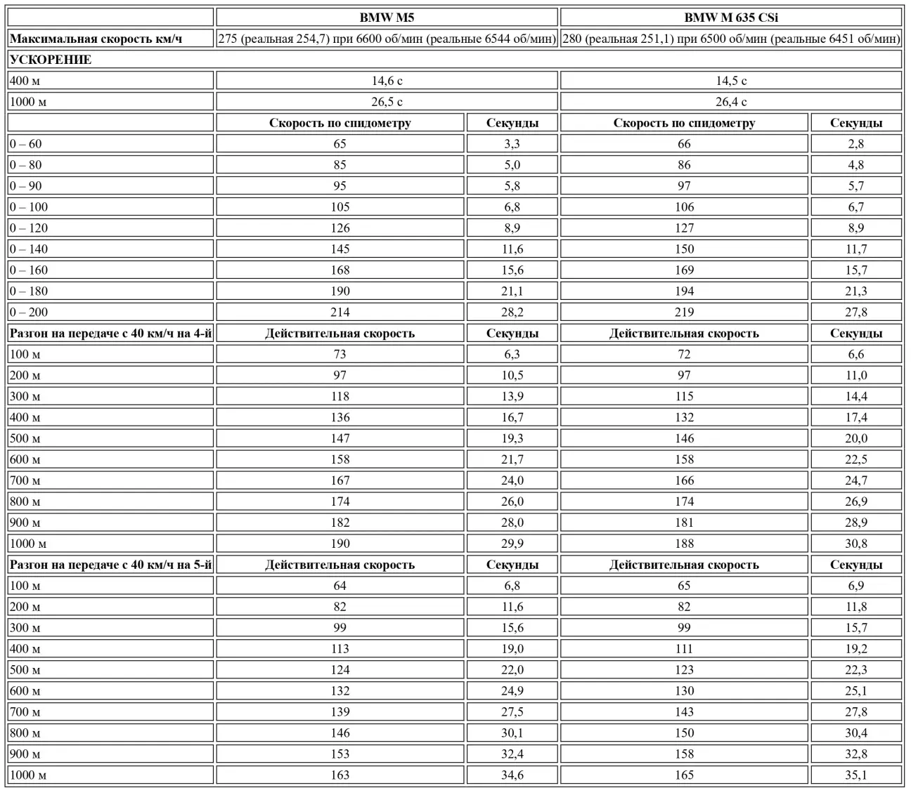 Короче говоря, на максимальной скорости незначительное аэродинамическое преимущество купе не проявляется, в то время как отличное состояние седана, который был в нашем распоряжении, очевидно, поскольку последний достиг почти 255 км/ч при 245 заявленных производителем, а M6 немного отстала с 251 км/ч против 255 обещанных. В разгоне — практически ничья, поскольку купе преодолевает отметку в километр за 26,4 с, как и ожидалось, в то время как седан подтверждает свою исключительную форму, показывая 26,5 с при 26,8 заявленных.