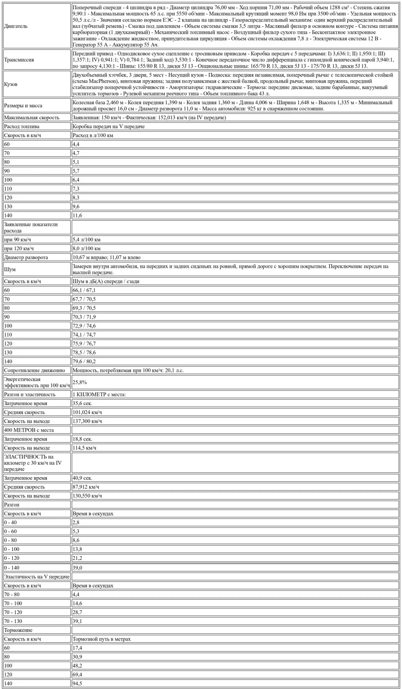 На километре с места она остается ниже порога 36 секунд; результат едва удовлетворительный. Однако хорош показатель в коротком рывке (разгоняется от 0 до 60 км/ч за 5,3 секунды), несмотря на иногда прерывистое смесеобразование.