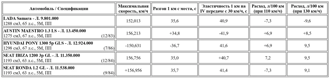 Важные данные автомобилей той же категории, что и Samara, которые еще не тестировались.