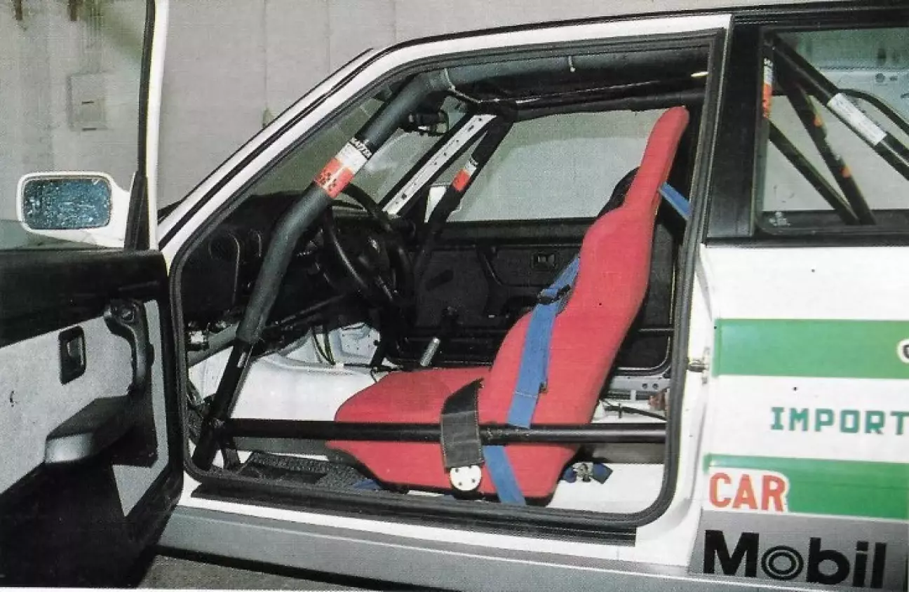 Что касается салона, обивка и удобные сиденья удаляются, остается только панель приборов (торпедо), рычаг переключения передач и рулевое колесо, на которое разрешено устанавливать проставочное кольцо для улучшения положения за рулем, если в этом есть необходимость. Также в салоне обязательна установка системы автоматического пожаротушения, которая дополняется огнетушителем объемом 4 кг. Обязателен каркас безопасности с несколькими точками крепления, а также выключатель массы. С левой стороны педалей может быть установлена подставка для ноги, и, наконец, следует установить ковш, адаптированный под рост пилота, и соответствующий 5-точечный ремень безопасности. Снаружи оригинальные замки капота и багажника удаляются, уступая место 4 пружинным запорам. После всех этих изменений трофейный 320is становится легче на 150 кг, получая однородный агрегат, в котором двигатель выделяется значительной мощностью для 2000 см³ атмосферного мотора, с довольно разумным крутящим моментом, что обеспечивает плавное, но прогрессивное нарастание оборотов, не выглядя таким мощным, как показывают цифры. В поворотах следует отметить легкость прохождения быстрых участков, в то время как в медленных поворотах низкий процент блокировки дифференциала (25%) немного затрудняет ситуацию, но с некоторой тренировкой и настройкой подвески под стиль вождения проблемы уменьшаются.