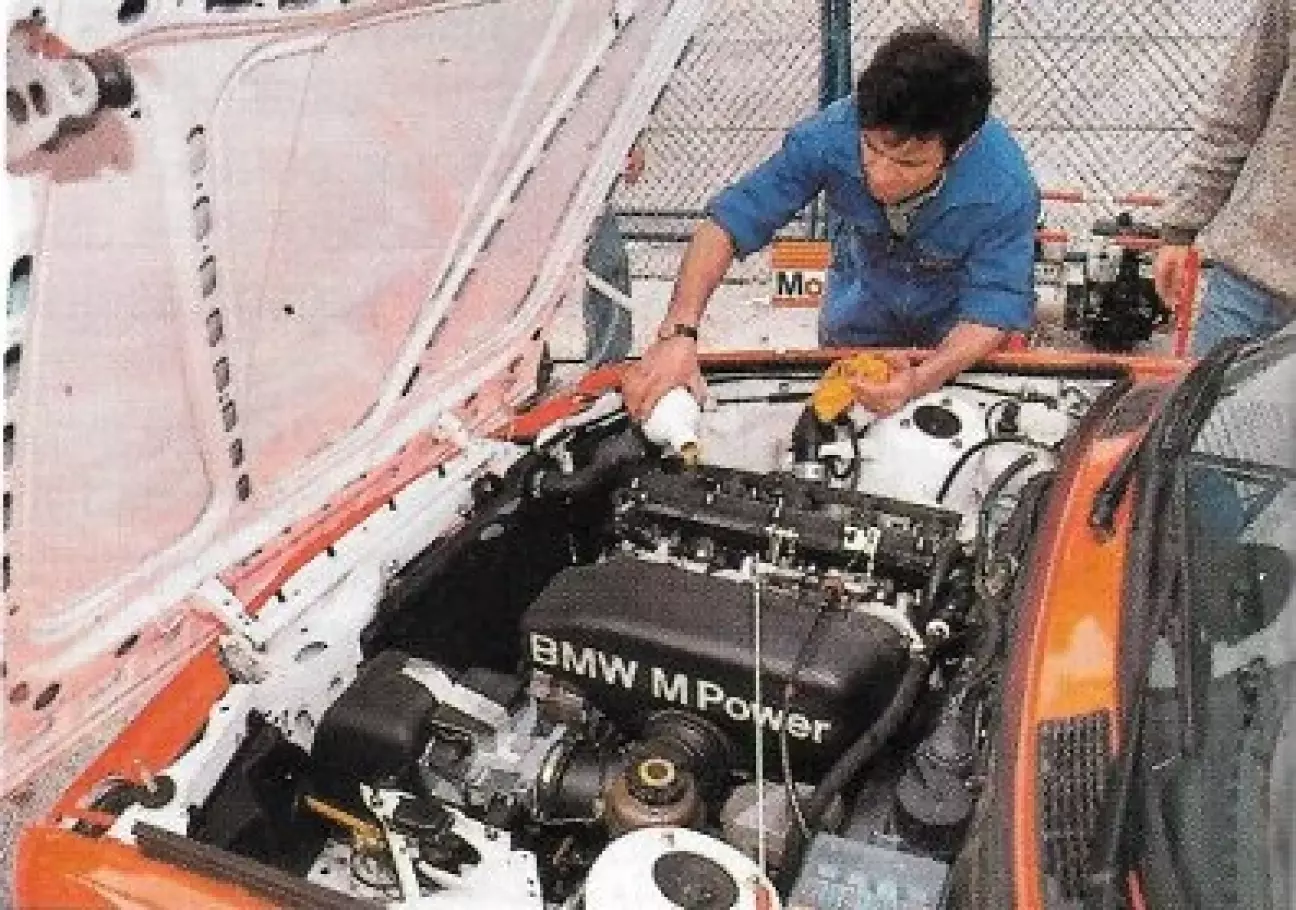 При взгляде спереди на BMW M3 и на 320is мы замечаем, что принятые решения схожи, причем фактор соревнований всегда присутствует, среди прочего это многоклапанный двигатель, задний привод и идентичный внешний профиль. Чтобы улучшить поведение этой модели, не увеличивая ее стоимость, отправной точкой было не трогать сердце, которое само по себе великолепно со своими 4 рядно расположенными цилиндрами, каждый из которых имеет 4 клапана, объемом 1990 см³, с впрыском, управляемым электронно системой Bosch Motronic, и все это размещено продольно. С этим атмосферным двигателем, развивающим 192 л.с. при 6900 об/мин, с отсечкой на 7200 об/мин в серийной модели, было достаточно установить новый специальный блок управления Motronic, чтобы отсечка оборотов сместилась на 7700 об/мин, а мощность легко поднялась примерно до 205 л.с. в трофейной модели. Также под капотом можно убрать воздушный фильтр, заменив его сеткой. Опоры двигателя, коробки передач и задняя опора механизма переключения передач также были заменены на тефлоновые, что значительно повысило их жесткость.