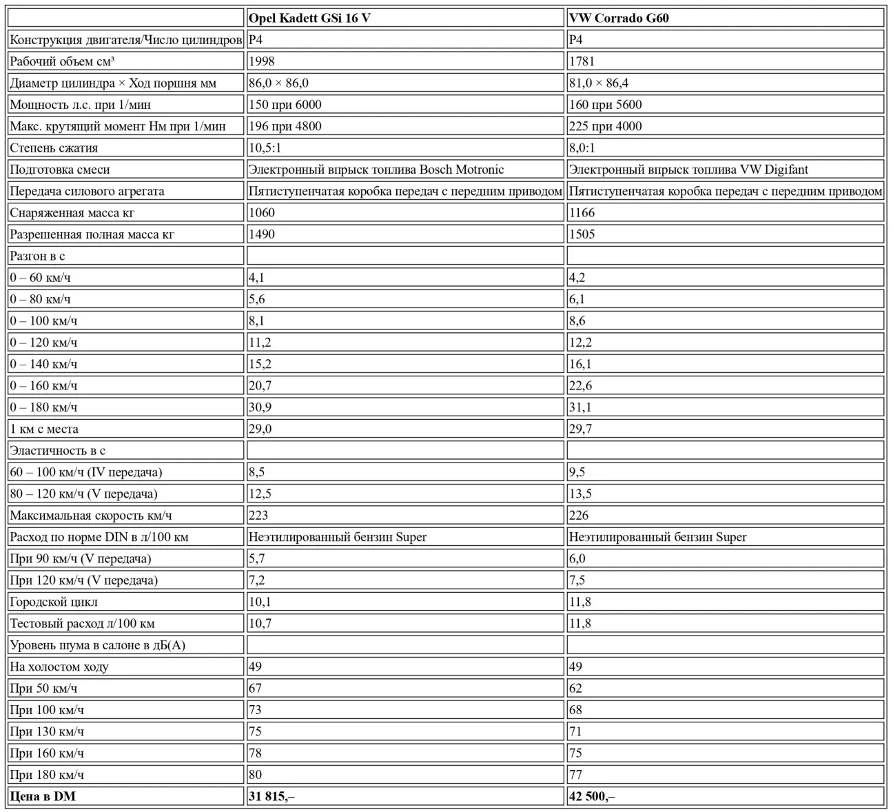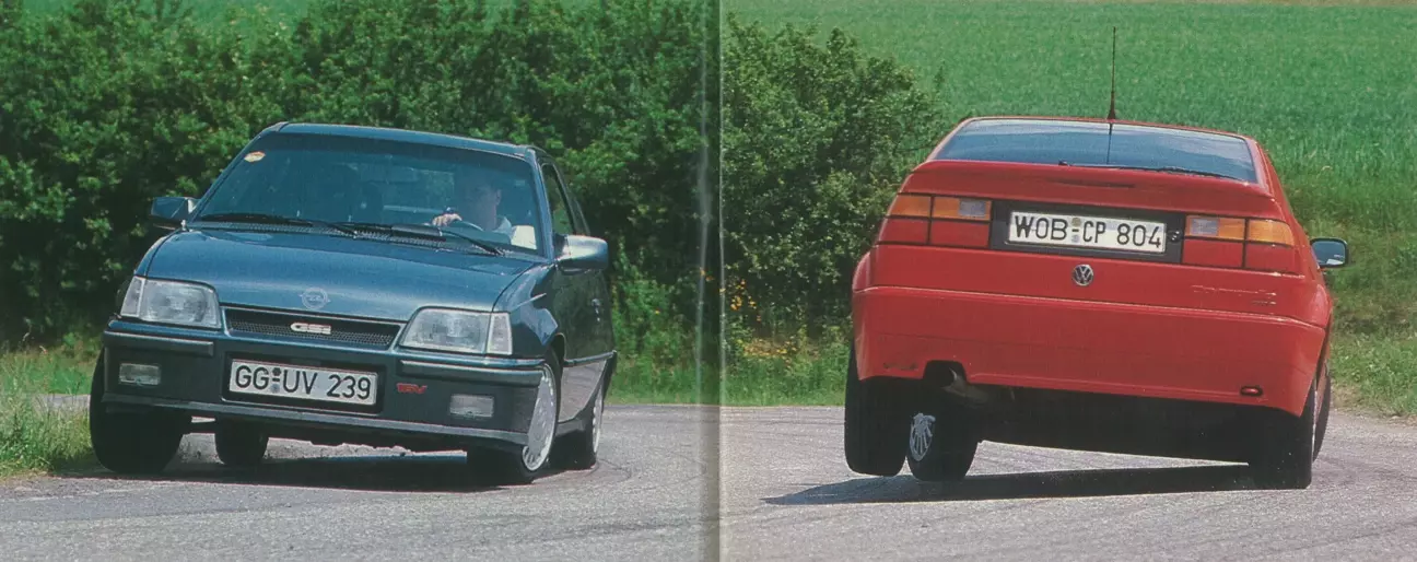 Opel Kadett GSi 16 V и VW Corrado разделяют всего 10 л.с. Техническая дистанция между их двигателями простирается от 16 клапанов до спирального нагнетателя шириной 60 миллиметров.