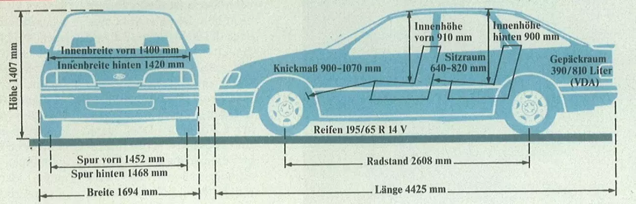 Учитывая значительную доплату, отказ от полного привода здесь не должен быть трудным, тем более, что уже версия GL обладает удовлетворительным серийным оснащением. К нему, разумеется, относится усилитель рулевого управления, а также некоторые комфортные дополнения, например, тонированные стекла, сдвижной люк, центральный замок и асимметрично разделенные, складывающиеся спинки задних сидений. На выбор предлагаются две версии кузова: четырехдверная с отдельным багажником или пятидверная с наклонной задней частью (доплата 515 марок). Их внешний вид, кстати, в отличие от XR 4 × 4, ничем не отличается от менее мощных версий семейства Sierra, что придает мощному 2,9-литровому варианту весьма не неприятный характер недооцененности. Не в последнюю очередь именно неприметный наряд делает эту Sierra своего рода секретным оружием. Так что, если рабочий объем важнее, чем высокие технологии, если важнее количество цилиндров, чем количество клапанов, то Ford предлагает соответствующие внутренние ценности.