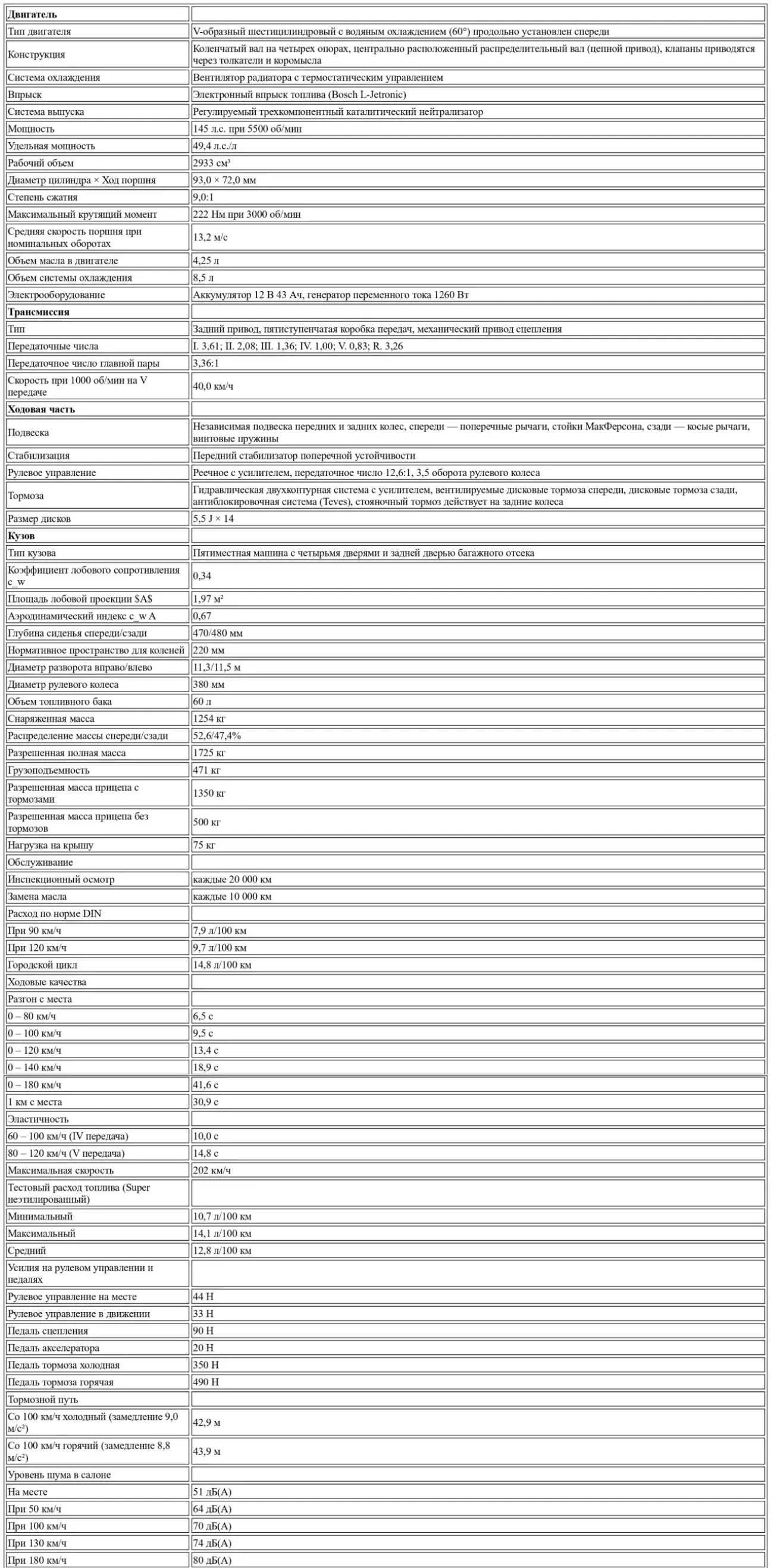 Силовой агрегат: Эластичный шестицилиндровый двигатель с умеренной «сбалансированностью хода», замедленный отклик на педаль газа, но высокие ходовые качества, хорошо подобранные передаточные числа пятиступенчатой коробки передач, относительно высокий расход топлива