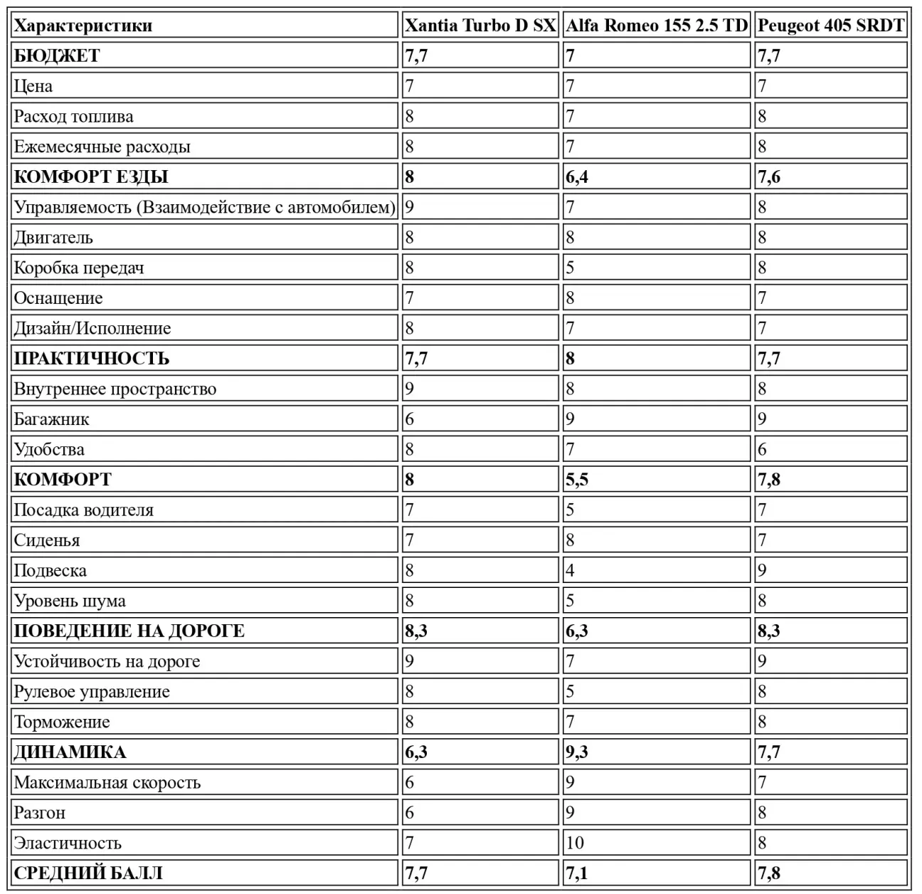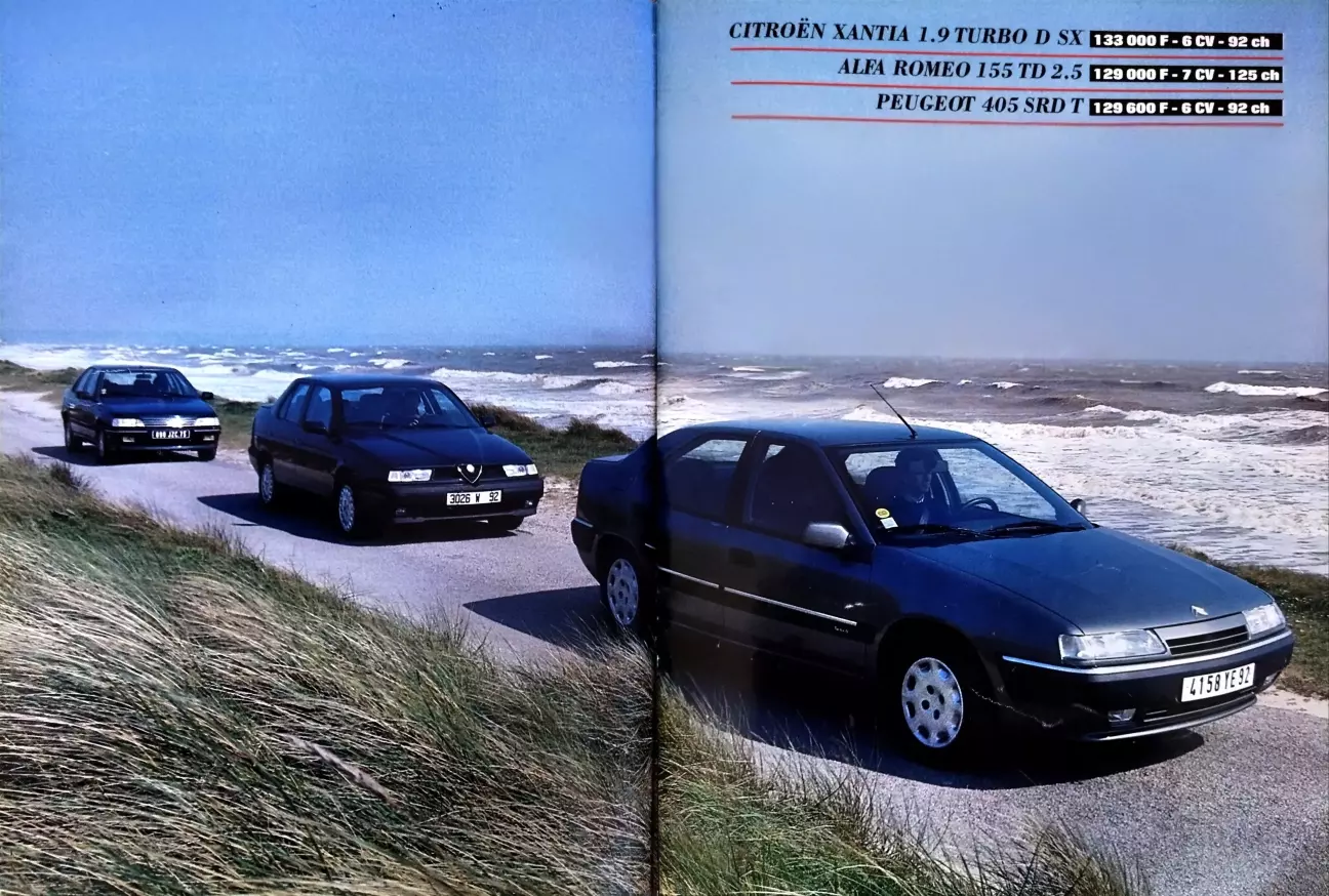 Перевод теста-сравнения Alfa Romeo 155 TD 2.5 - Citroën Xantia 1.9 Turbo D SX - Peugeot 405 SRD T от французского автомобильного журнального издания L’Action Automobile Et Touristique, № 378, Июнь, 1993.