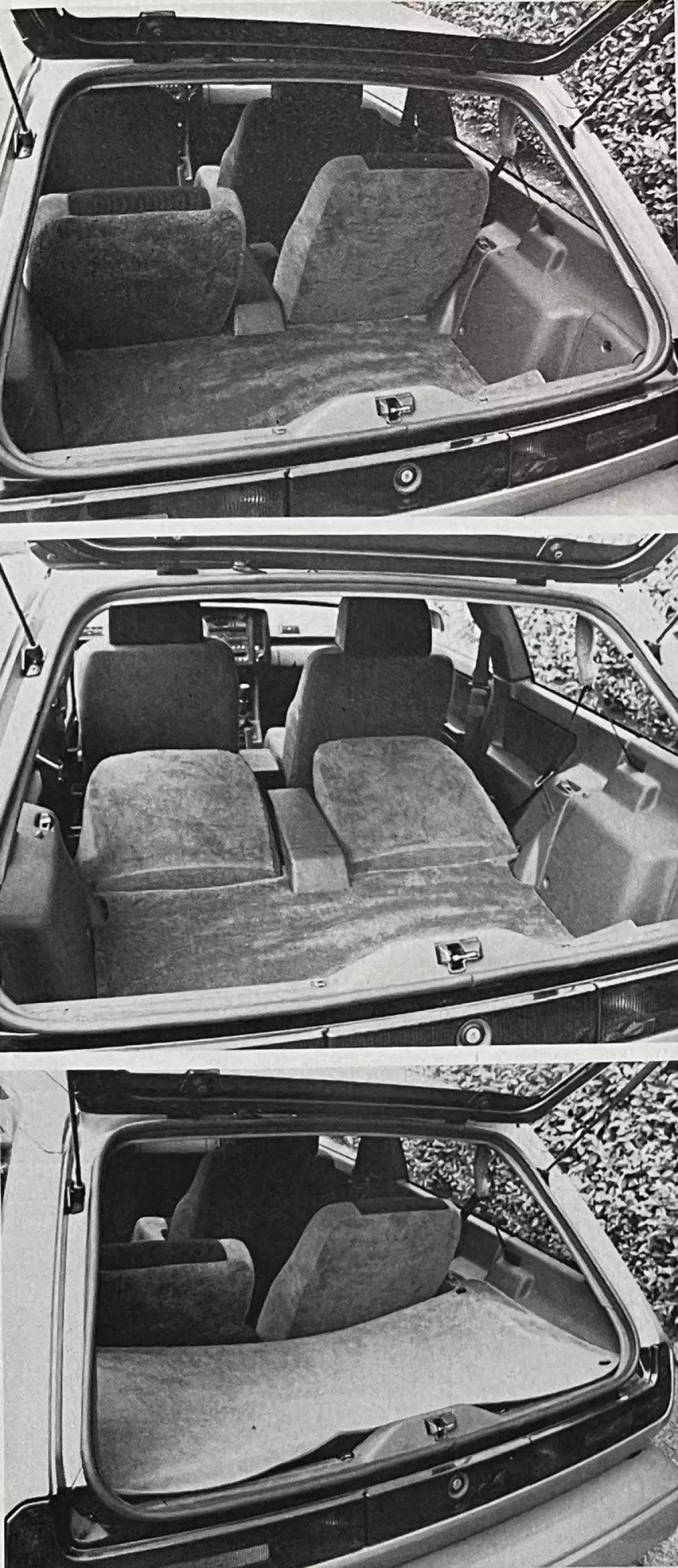 Багажник не прикрыт полкой для шляп, достойной этого названия; она заменена гибким листом для сокрытия груза, но который требует долгой и утомительной манипуляции, поскольку он крепится кнопками по бокам. Достойно ли это престижной модели? Временное запасное колесо расположено вертикально вдоль задней панели, что еще больше уменьшает объем багажника. Его положение обусловлено не вкусом стилистов, а намерением сохранить деформируемость в случае столкновения сзади. Топливный бак, изготовленный из гибкого материала, расположен под задними сиденьями.