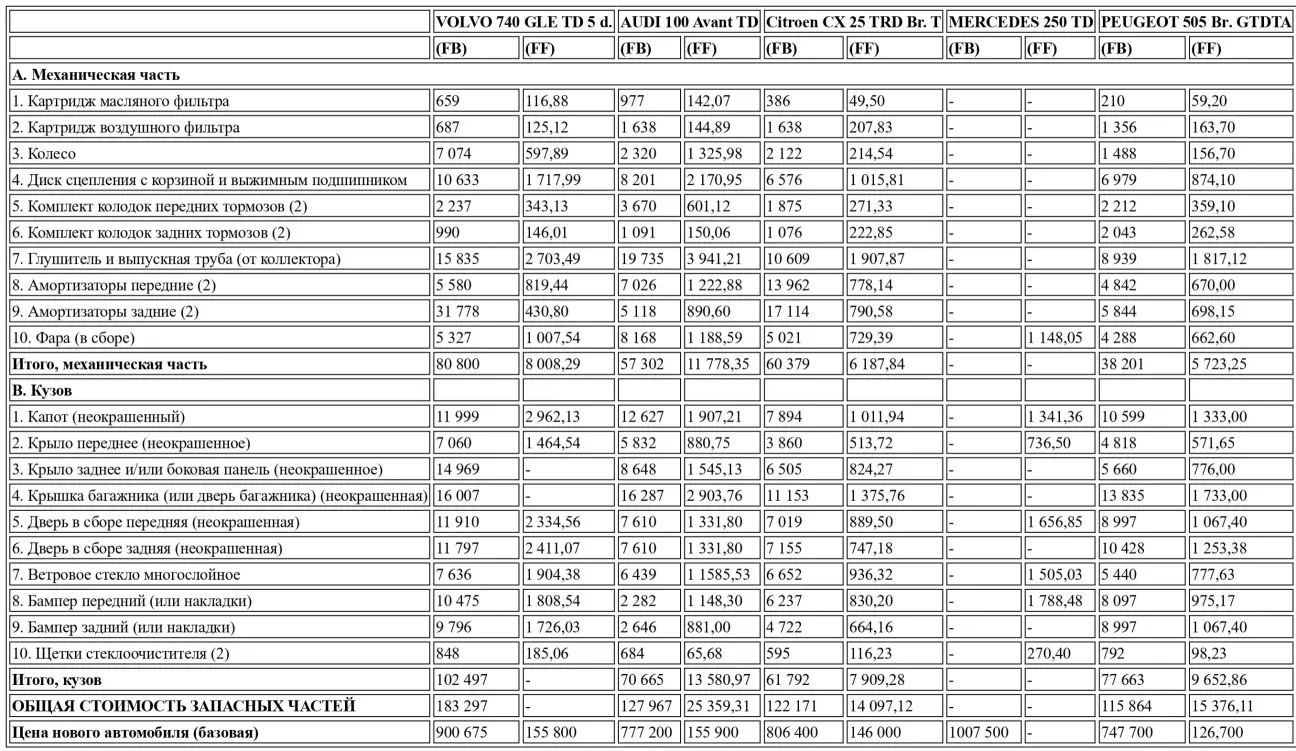 ЦЕНЫ НА ЗАПЧАСТИ В СРАВНЕНИИ С КОНКУРЕНТАМИ