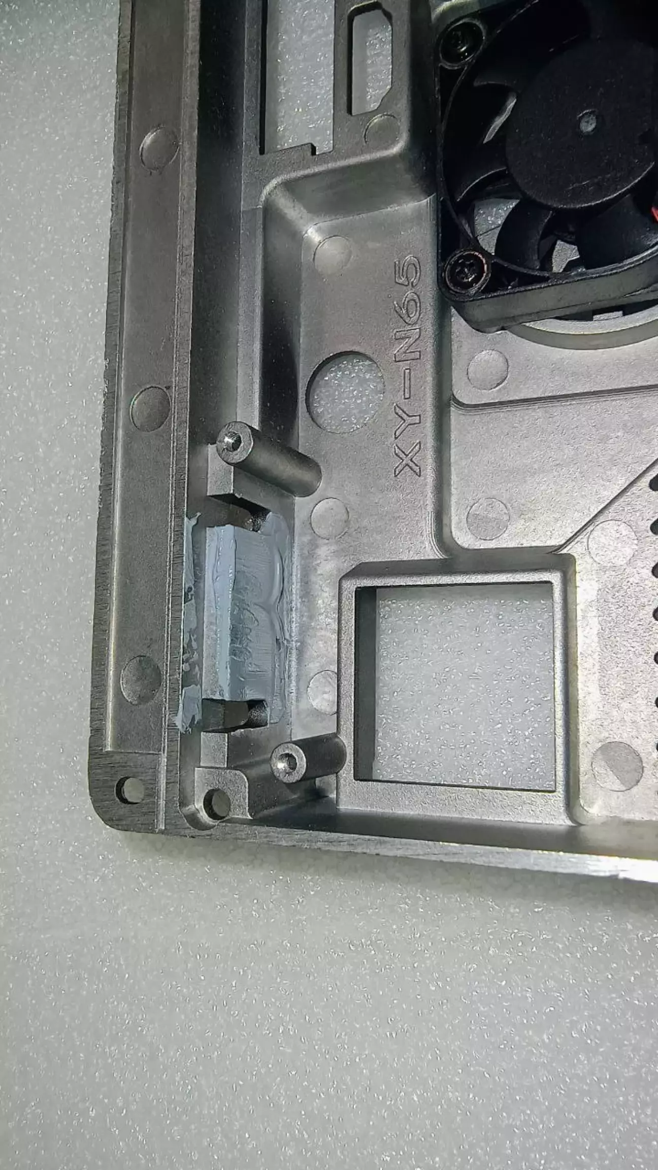 Плата з іншої сторони, прокладка передавала тепло від процесорного модуля, котрий закритий повністю.