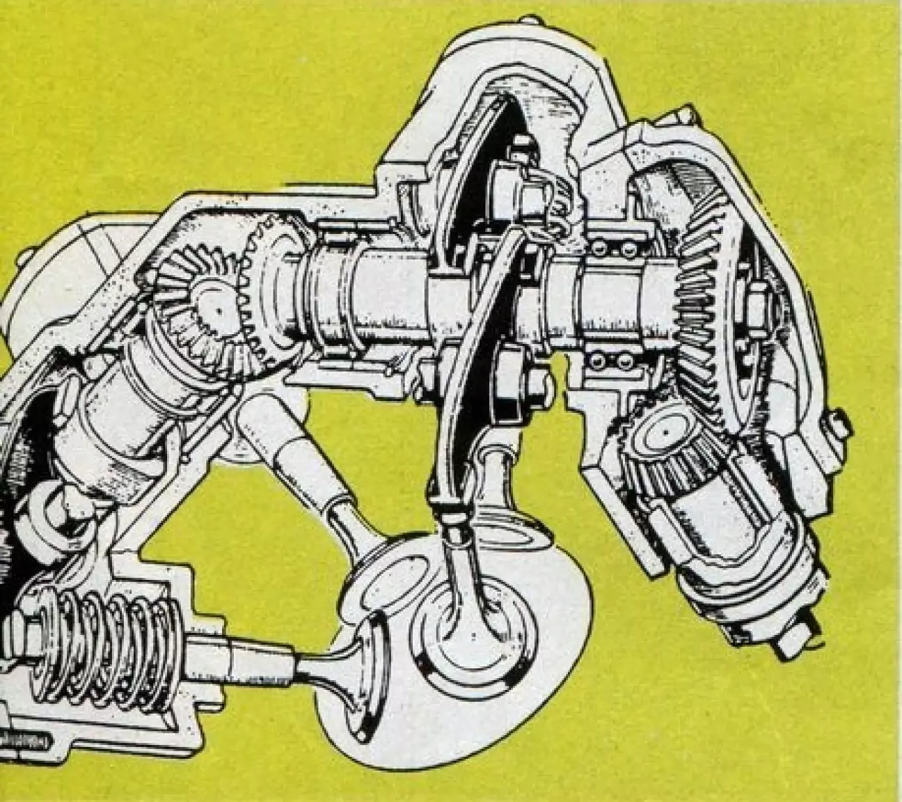 Должна была остаться только одна настоящая трудность: переменные инерционные силы. Двигатели вращались все быстрее, и становилось все сложнее контролировать дьявольские возвратно-поступательные движения поршней и клапанов. Что касается поршней, с проблемой справились, уменьшив одновременно рабочий объем каждого цилиндра и ход поршня (даже если для этого приходилось увеличивать диаметр цилиндра); а что касается клапанов, та же идея привела инженеров к тому, чтобы поручить возврат клапанов на их седла механическим устройствам (а не просто пружинам, которые были слишком ненадежными)... или увеличить количество этих клапанов. Оба принципа, родившиеся в течение первых десяти лет века, сосуществовали много лет, но мультиклапанные системы имели преимущества, которых не было у десмодромных систем, и в конечном итоге именно они одержали верх. Потому что в целом десмодромные приводы состояли в удвоении привода клапанов, то есть в разработке закрывающего распредвала (относительно сложный расчет, поскольку требовалось учесть совместимость с открывающим распредвалом), его изготовлении, монтаже, приводе, при этом сохраняя возможность регулировки зазоров: все это сложные и дорогостоящие операции, которые привели к полному вытеснению десмодромного газораспределения из серийного производства, за исключением одной итальянской марки мотоциклов, построившей свой имидж на этой конструктивной особенности.