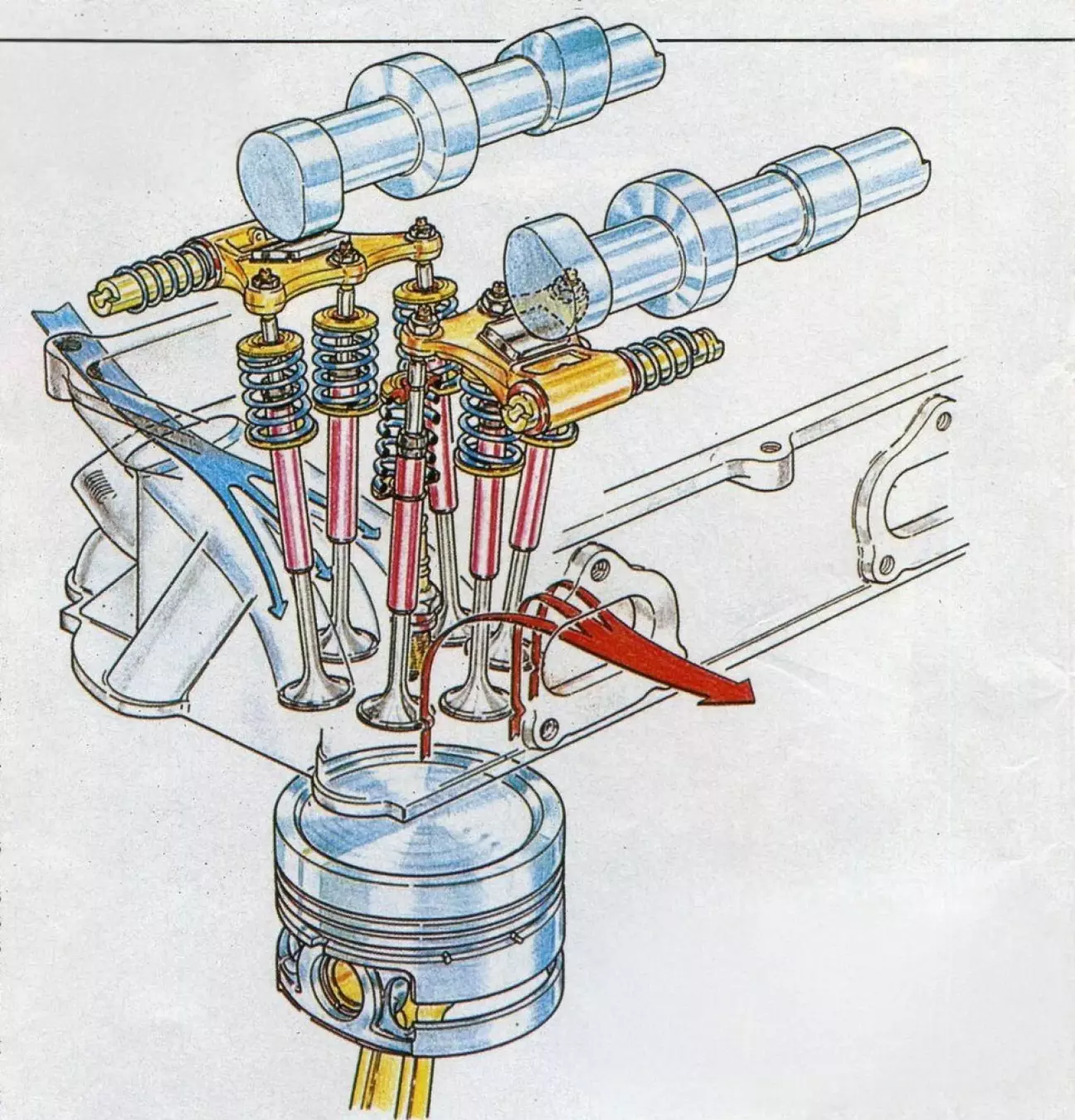 Четыре клапана на цилиндр, долгое время считавшиеся, наряду с двумя верхними распредвалами, вершиной инженерной мысли, сегодня становятся доступнее. Механизм газораспределения — то есть, совокупность механизмов, регулирующих поток газов в тепловых двигателях, — всегда был предметом глубокой работы среди мотористов. По той или иной причине эта функция всегда вызывала живой интерес у инженеров... и у пользователей, и именно она исторически претерпела самые глубокие изменения.