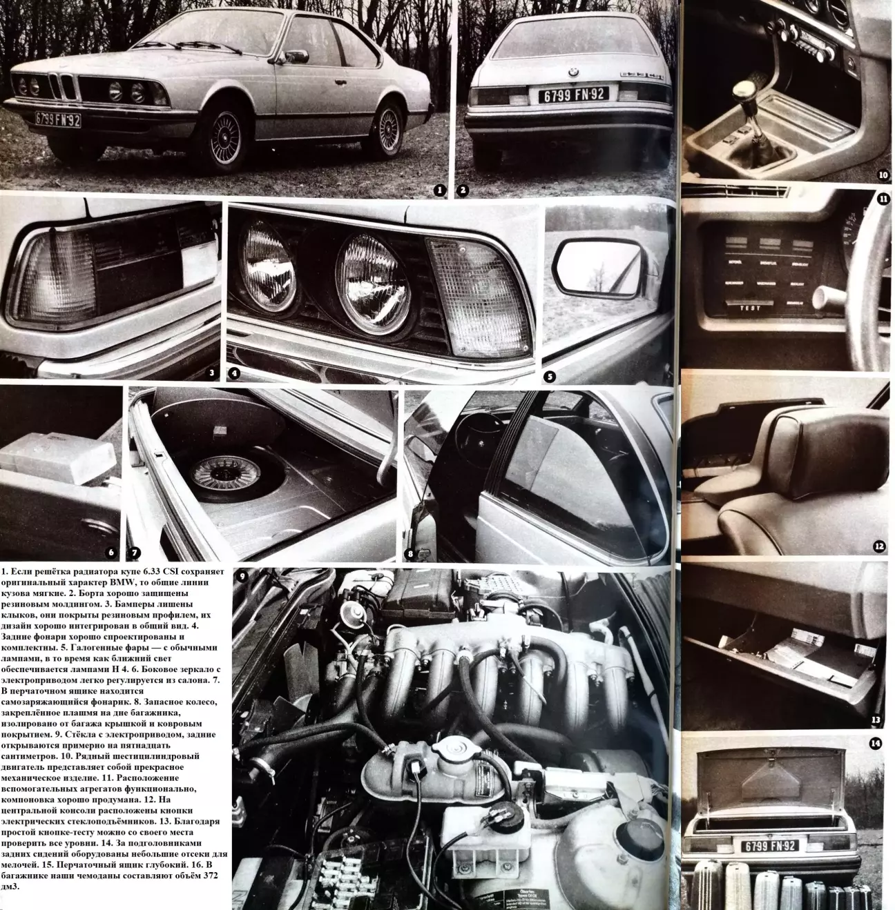 Спортивный автомобиль, по сути, родился во Франции, и до последней мировой войны такие имена, как Bugatti, Delahaye, Talbot, Delage, Salmson и некоторые другие, символизировали собой породу автомобилей одновременно роскошных и исключительно приятных в управлении. И, тем не менее, менее чем за полвека эта традиция была стёрта из сферы интересов наших крупных марок, и лишь две или три совершенно обособленные модели упорно продолжают существовать. Чтобы вновь ощутить истинное удовольствие от вождения, необходимо пересечь наши границы. Несмотря на полуразрушенное состояние, британская промышленность всё ещё производит настоящие спортивные автомобили, а нынешние проблемы Италии не мешают ей предоставлять красноречивый каталог со своими творениями. Наконец, есть Германия. По ту сторону Рейна Mercedes, Porsche и BMW делят престижный табун мощных и изысканных машин, как с чисто технической точки зрения, так и с точки зрения повседневного использования. Между Daimler-Benz, традиционно ориентированной на комфортную и быструю машину, и Porsche, чья связь с автоспортом хорошо известна, BMW пытается осуществить синтез этих двух тенденций. В этом отношении купе 633 CSI в настоящее время является флагманом мюнхенской фирмы. Какова же её реальная индивидуальность? Мы собираемся раскрыть её вместе.