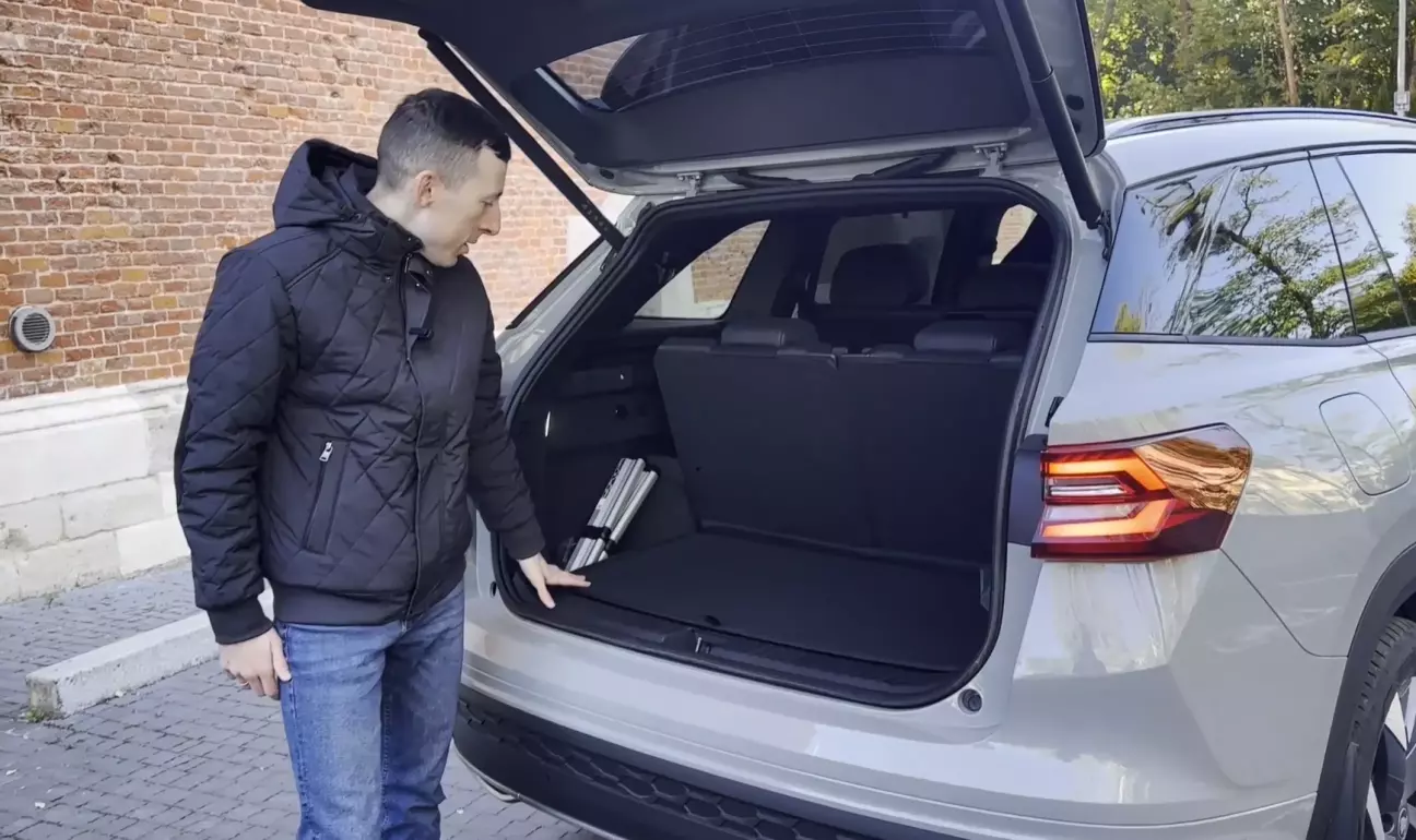 Традиційно Кодіак радує простором на другому ряду сидінь + в нашому випадку це 7-місний автомобіль, тож я розмістився і на третьому ряді сидінь. Він суто номінальний, але для дітей або для нетривалої поїздки дорослих по місту він є цілком достатнім. І що точно оцінять наші водії - так це розмір багажника! Він до речі з електроприводом і можливістю безконтактного відкривання. Так от, навіть з розкладеним третім рядом сидінь, місця в ньому є достатньо для декількох сумок або однієї великої валізи. Якщо ж третій ряд скласти, то отримуємо один з найбільших багажників у своєму класі! Дуже круто, і особливо круто також, що в багажнику про традиції від Шкода є багато фішок "simply clever", як от різні органайзери для вантажів, сітки і кріплення тощо.