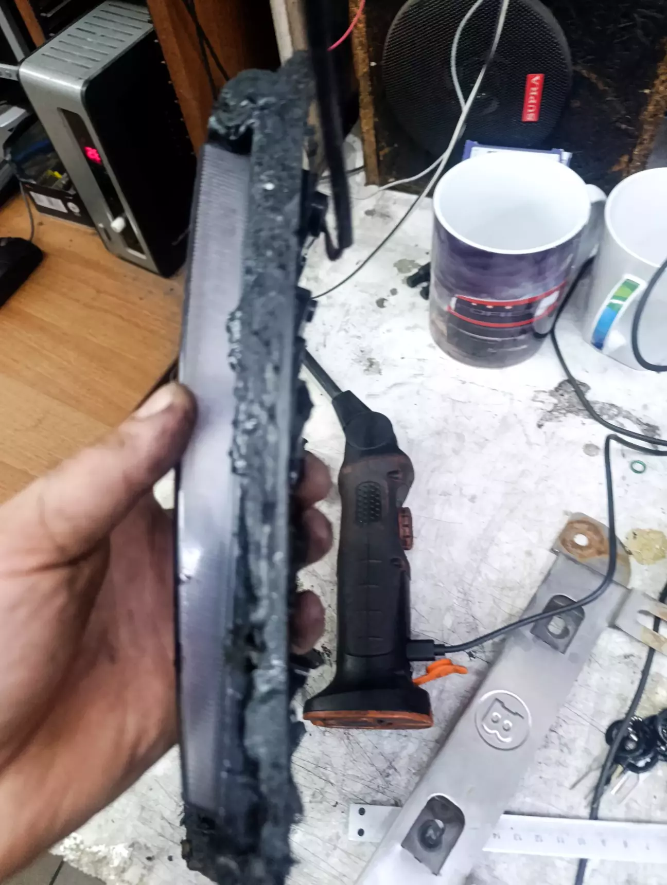 Знімаю і прозріваю, там туба герметику.